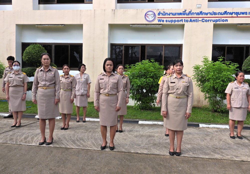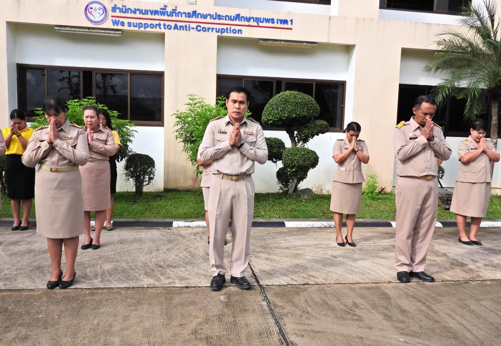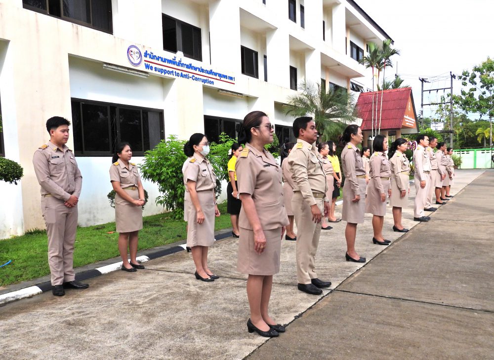 สพป.ชุมพร เขต 1 ร่วมกิจกรรมเข้าแถวเคารพธงชาติ บูชาพระรัตนตรัย และกล่าวคำปฏิญญาเขตสุจริต