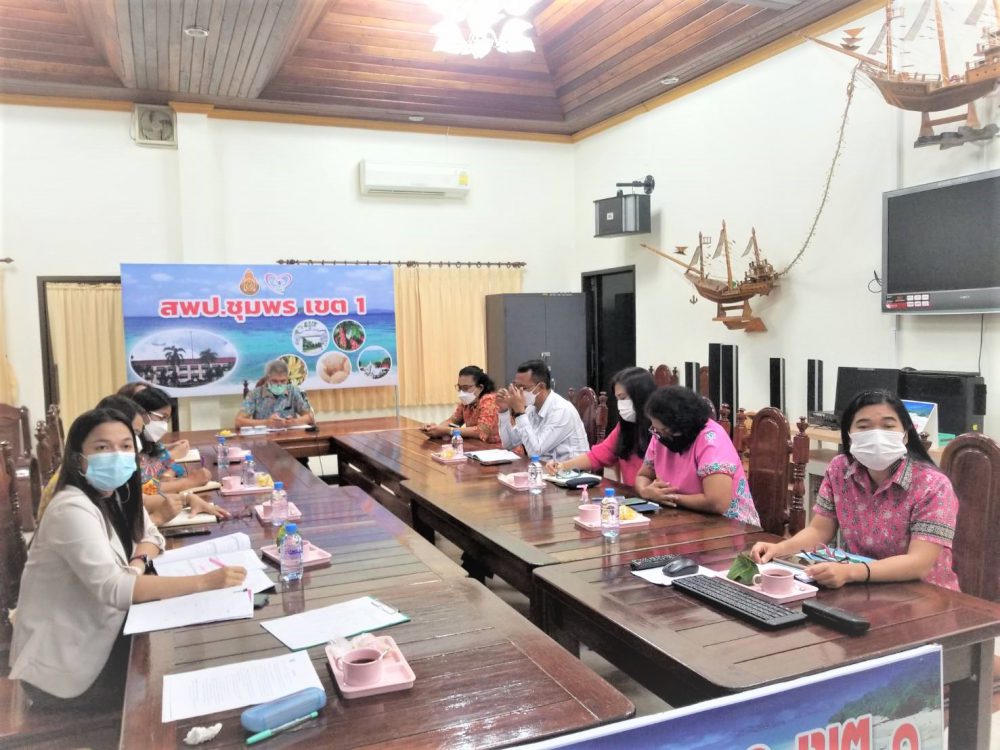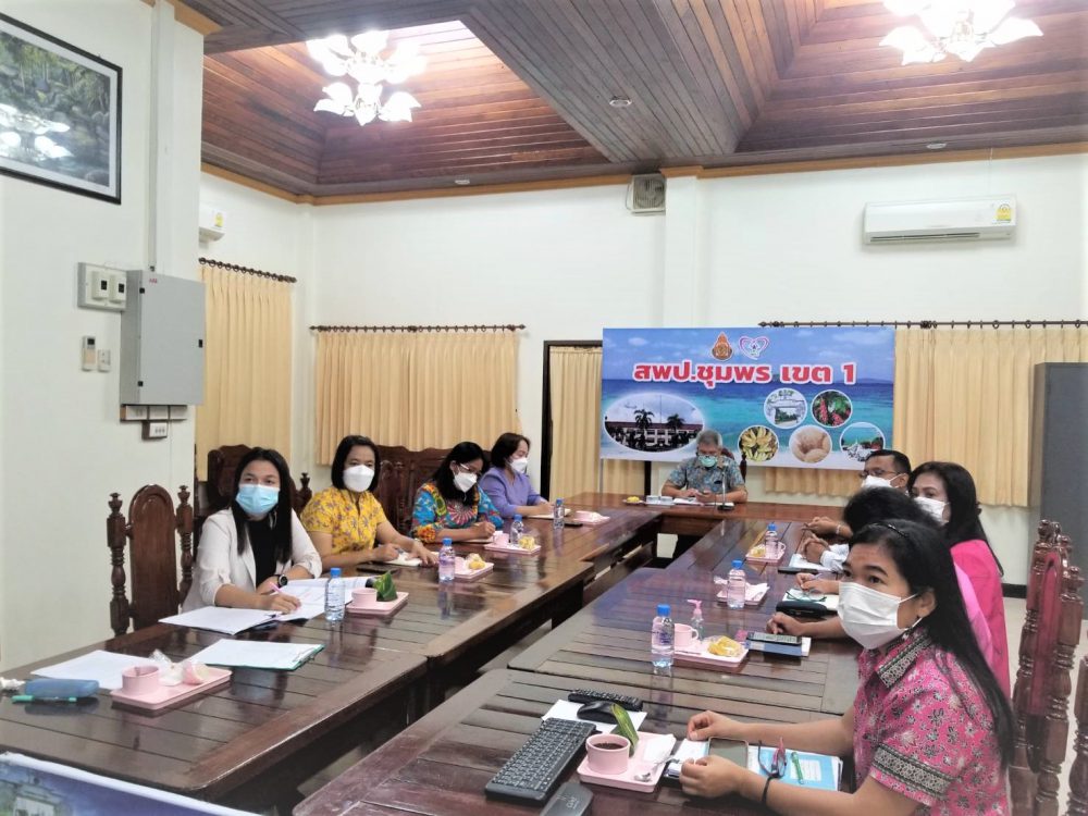 นายมนูญ จันทร์สุข ผู้อำนวยการสำนักงานเขตพื้นที่การศึกษาประถมศึกษาชุมพร เขต 1 พร้อมด้วย ผู้อำนวยการกลุ่ม/หน่วย และตัวแทนผู้อำนวยการกลุ่ม ร่วมรับชมรายการ "พุธเช้า..ข่าว สพฐ." สพฐ.วิถีใหม่ วิถีคุณภาพ ครั้งที่ 26/2564 จากสำนักงานคณะกรรมการการศึกษาขั้นพื้นฐาน เพื่อรับฟังการดำเนินงานนโยบาย ข่าวสาร แนวทางข้อราชการ แนวทางการขับเคลื่อนนโยบายด้านการศึกษาของ สพฐ. แนวทางการปฏิบัติงานและเรื่องที่ สพป. ต้องเร่งรัดการดำเนินงานอย่างเร่งด่วน จาก สพฐ. ภายใต้สถานการณ์การแพร่ระบาดของโรคติดเชื้อไวรัสโคโรนา 2019 (Covid-19) โดย ดร.อัมพร พินะสา เลขาธิการ กพฐ. ผ่านระบบ (Video Conference) ณ ห้องประชุมบางผรา อาคารสโมสร สพป.ชุมพร เขต 1