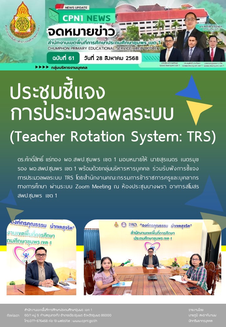 การประชุมชี้แจง การประมวลผลระบบ (Teacher Rotation System: TRS) 28 สิงหาคม 256828 สิงหาคม 2025 กลุ่มบริหารงานบุคคล สพป.ชพ.1 ข่าวและกิจกรรมกลุ่มบริหารงานบุคคล FacebookFacebookXXLINELine กลุ่มบริหารงานบุคคล สพป.ชพ.1