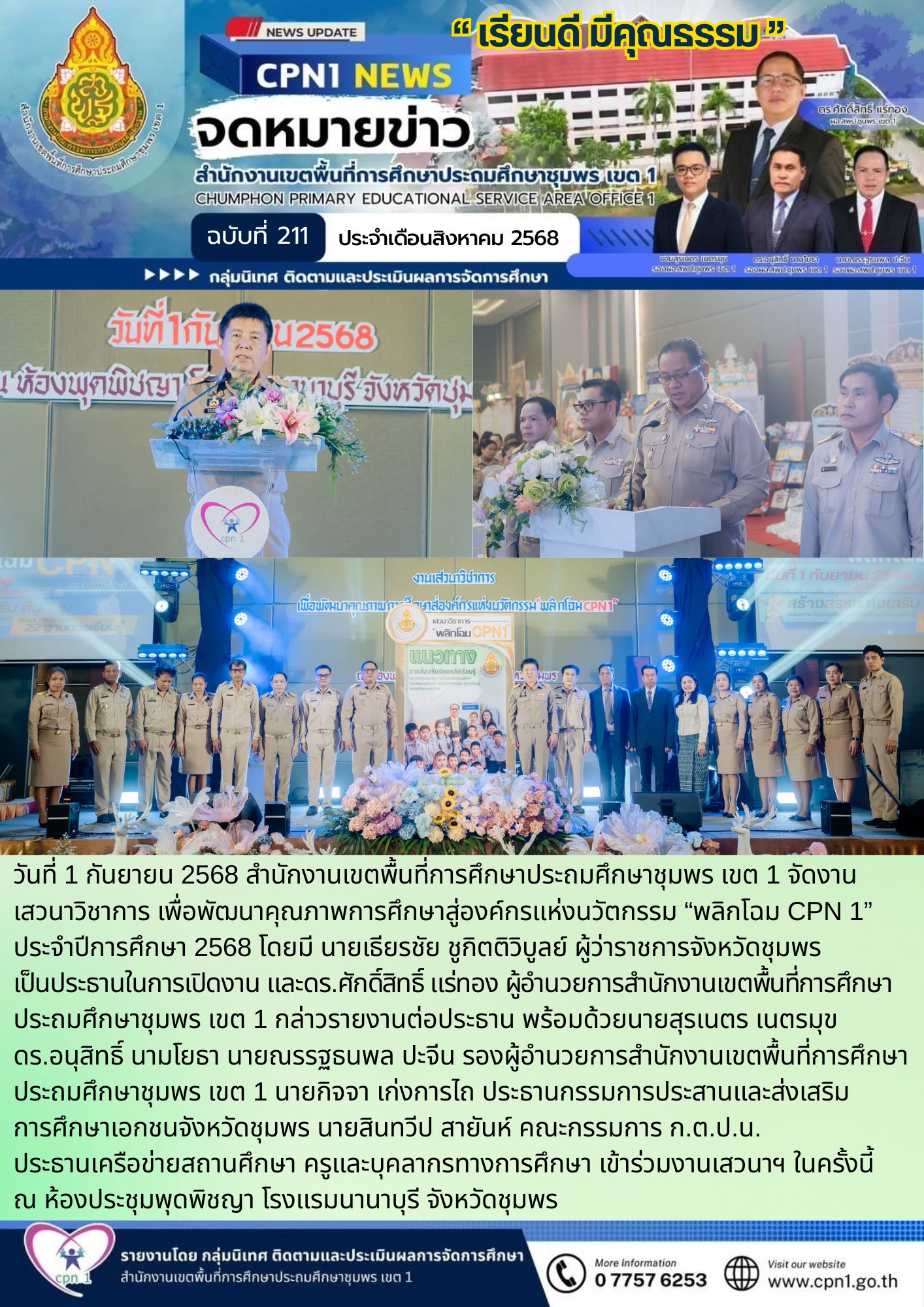 สู่องค์กรแห่งนวัตกรรม "พลิกโฉม CPN 1" ประจำปีการศึกษา 2568 โดยมี นายเธียรชัย ชูกิตติวิบูลย์ ผู้ว่าราชการจังหวัดชุมพร