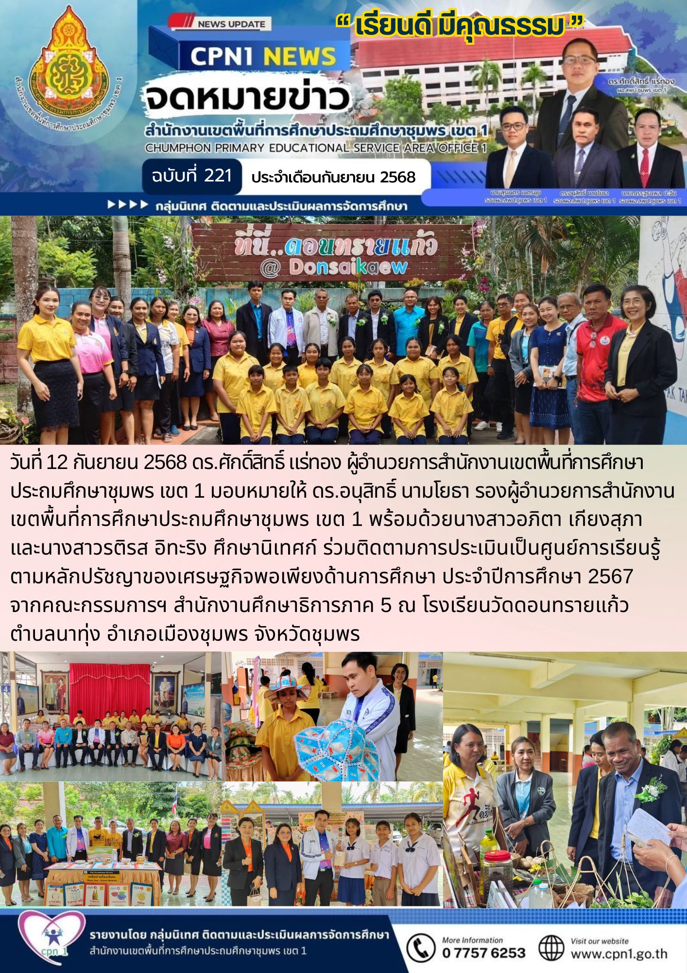 วันที่ 12 กันยายน 2568 ดร.ศักดิ์สิทธิ์ แร่ทอง ผู้อำนวยการสำนักงานเขตพื้นที่การศึกษาประถมศึกษาชุมพร เขต 1
