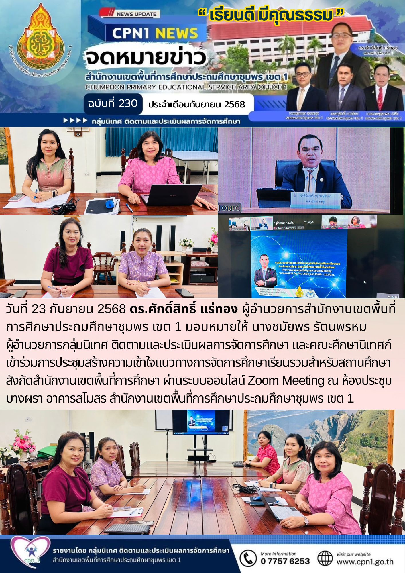 Zoom Meeting ณ ห้องประชุมบางผรา อาคารสโมสร สำนักงานเขตพื้นที่การศึกษาประถมศึกษาชุมพร เขต 1