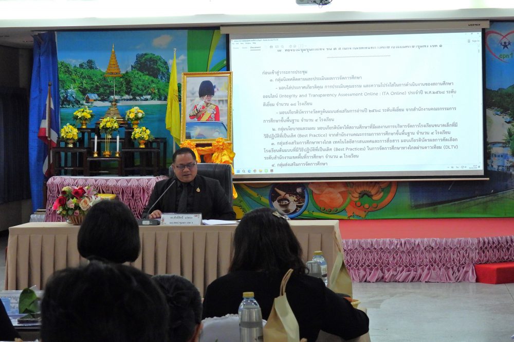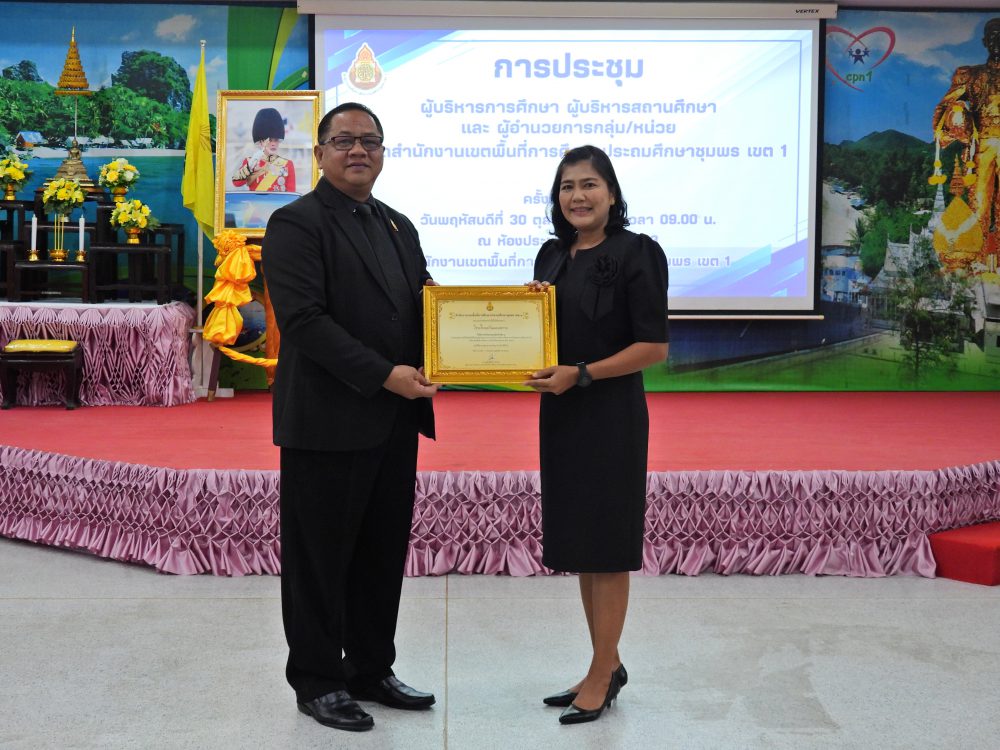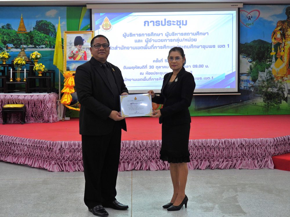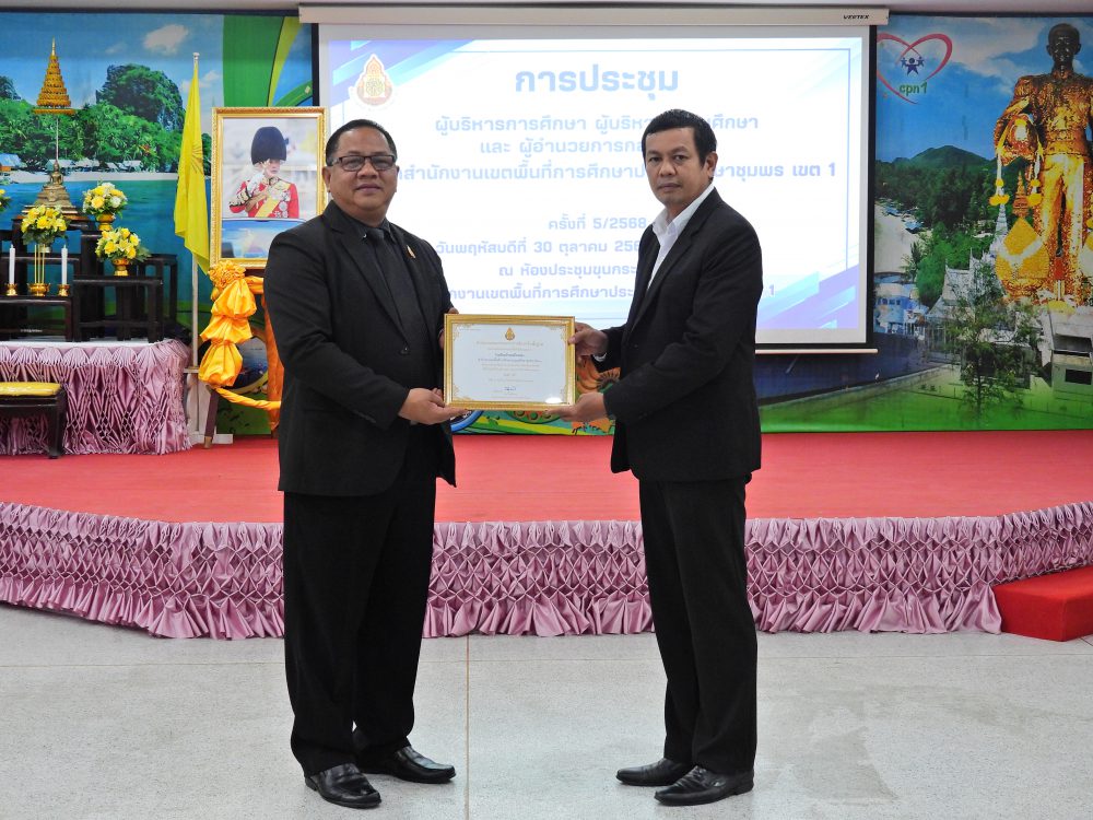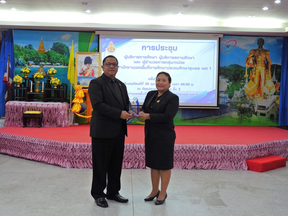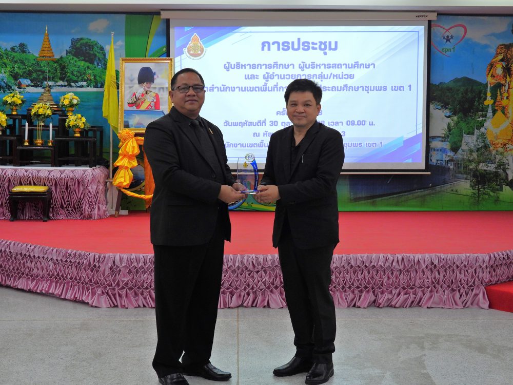 ..<<วันที่ 30 ตุลาคม 2568 เวลา 09.00 น. ดร.ศักดิ์สิทธิ์ แร่ทอง ผอ.สพป.ชุมพร เขต 1 เป็นประธานการประชุมผู้บริหารการศึกษา ผู้บริหารสถานศึกษา และผู้อำนวยการกลุ่ม/หน่วย ครั้งที่ 5/2568เพื่อแจ้งนโยบายของรัฐมนตรีว่าการกระทรวงศึกษาธิการ, ประเด็นท้าทายของ สพฐ. และ หลักการทำงานของเลขาธิการ กพฐ. (9 9 9) รวมถึงการเตรียมความพร้อมการเปิดภาคเรียนที่ 2/2568 และการดำเนินงานเพื่อความปลอดภัยของนักเรียน และก่อนเข้าสู่วาระการประชุม ได้มอบโล่ประกาศเกียรติคุณ และเกียรติบัตร ให้กับโรงเรียน ประกอบด้วย กลุ่มนิเทศติดตามและประเมินผลการจัดการศึกษา มอบโล่ประกาศเกียรติคุณ การประเมินคุณธรรม และความโปร่งใสในการดำเนินงานของสถานศึกษาออนไลน์ (Integrity and Transparency Assessment Online : ITA Online) ประจำปี พ.ศ.2568 ระดับดีเยี่ยม จำนวน 18 โรงเรียน และเกียรติบัตรรางวัลครูต้นแบบส่งเสริมการอ่านปี 2568 ระดับดีเยี่ยม จากสำนักงานคณะกรรมการการศึกษาขั้นพื้นฐาน จำนวน 4 โรงเรียน กลุ่มนโยบายและแผน มอบเกียรติบัตรให้สถานศึกษาที่มีผลงานการบริหารจัดการโรงเรียนขนาดเล็กที่มีวิธีปฏิบัติที่เป็นเลิศ (Best Practice) จากสำนักงานคณะกรรมการการศึกษาขั้นพื้นฐาน จำนวน 4 โรงเรียน กลุ่มส่งเสริมการศึกษาทางไกล เทคโนโลยีสารสนเทศและการสื่อสาร มอบเกียรติบัตรผลการคัดเลือกโรงเรียนต้นแบบที่มีวิธีปฏิบัติ ที่เป็นเลิศ (Best Practices) ในการจัดการศึกษาทางไกลผ่านดาวเทียม (DLTV) ระดับสำนักงานเขตพื้นที่การศึกษา จำนวน 3 โรงเรียน และ กลุ่มส่งเสริมการจัดการศึกษา มอบเกียรติบัตร ผลงานที่สามารถเป็นแบบอย่างได้ในด้านการน้อมนำพระบรมราโชบายด้านการศึกษาในหลวงรัชกาลที่ 10 และหลักปรัชญาของเศรษฐกิจพอเพียง ระดับคุณภาพดีเยี่ยม ต้นแบบระดับสำนักงานเขตพื้นที่การศึกษา จำนวน 10 โรงเรียน และเกียรติบัตร การคัดเลือกเด็กและเยาวชนดีเด่น ประจำปี 2569 สังกัดสำนักงานเขตพื้นที่การศึกษาประถมศึกษา จังหวัดชุมพร จำนวน 1 คน หลังจากนั้น ได้ดำเนินการตามระเบียบวาระการประชุมตามลำดับ โดยมีรอง ผอ.สพป.ชุมพร เขต 1 ผู้อำนวยการกลุ่ม/หน่วย ร่วมชี้แจงภารกิจและการดำเนินงานเรื่องต่างๆของกลุ่มงานใน สพป.ชพ.1 ให้ที่ประชุมได้รับทราบในการประชุมครั้งนี้ ณ ห้องประชุมขุนกระทิง ชั้น 3 สำนักงานเขตพื้นที่การศึกษาประถมศึกษาชุมพร เขต 1 >>.