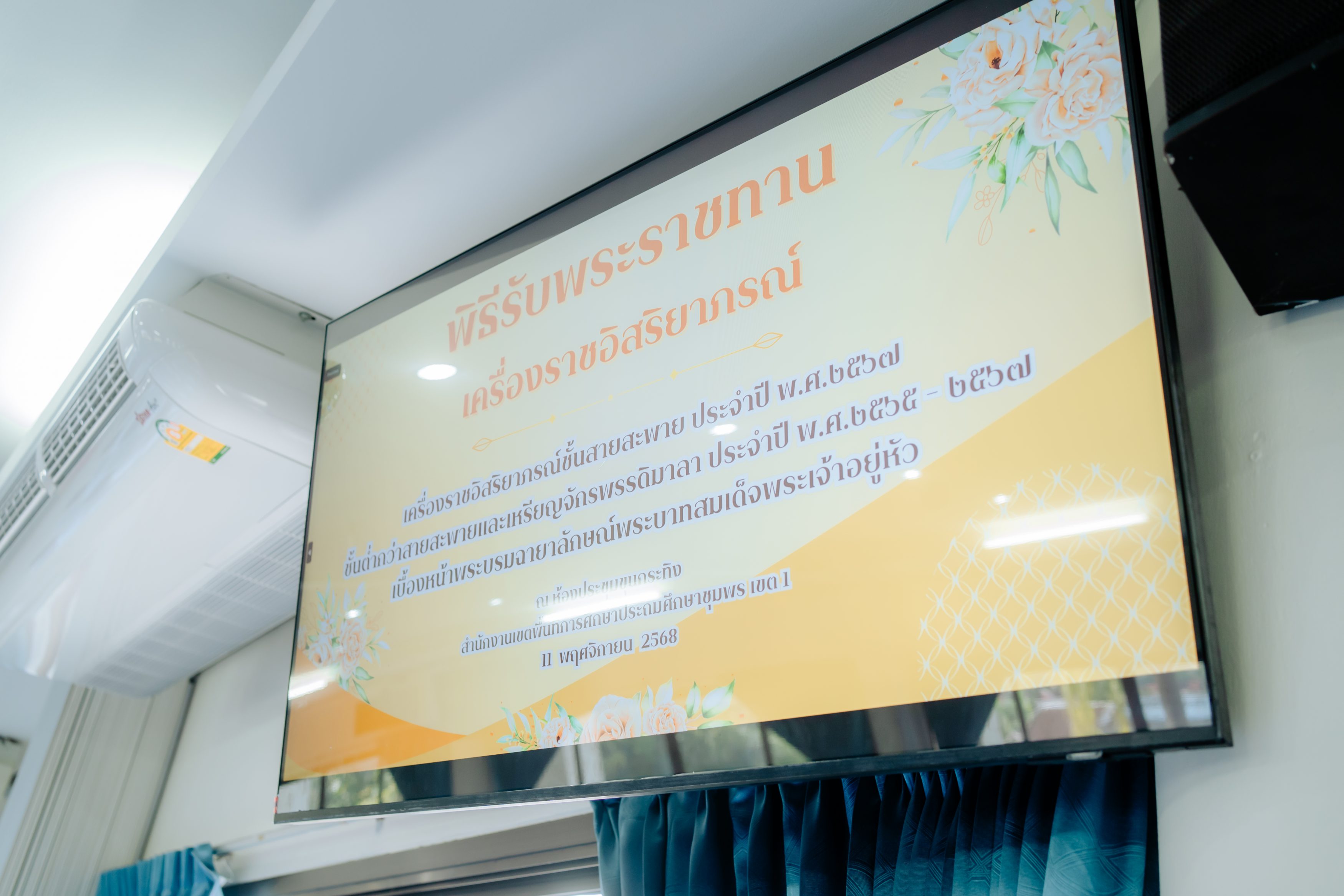 พิธีรับพระราชทานเครื่องราชอิสริยาภรณ์ชั้นสายสะพาย ประจำปี 2567 และชั้นต่ำกว่าสายสะพายและเหรียญจักรพรรดิมาลา ประจำปี 2565 – 2567 เบื้องหน้าพระบรมฉายาลักษณ์ พระบาทสมเด็จพระเจ้าอยู่หัว วันจันทร์ที่ 11 พฤศจิกายน 2568 เวลา 09.00 น สำนักงานเขตพื้นที่การศึกษาประถมศึกษาชมพร เขต 1 จัดพิธีรับพระราชทานเครื่องราชอิสริยากรณ์ชั้นสายสะพาย ประจำปี 2567 และชั้นต่ำกว่าสายสะพายและเหรียญจักรพรรดิมาลา ประจำปี 2565 – 2567 เบื้องหน้าพระบรบอายาลักษณ์ พระบาทสมเด็จพระเจ้าอยู่หัว โดย นายศักดิ์สิทธิ์ แร่ทอง ผอ.สพป.ชมพร เขต 1 ประรานใน พิธีรับพระราชทานเครื่องราชอิสริยากรณ์ แบ่งเป็นภาคเช้า ชั้นสายสะพาย ปม.ชั้นตรา ทช. ชั้นตรา ฉช. ชั้นตรา จม. และชั้นตรา บ.ช. จำนวน 115 สำรับ และกาคบ่าย ชั้นตรา ตม. และเหรียญจักรพรรดิบาลา จำนวน 128 สำรับ ณ ห้องประชุมขุนกระทิง สำนักงานเขตพื้นที่การศึกษาประถมศึกษาชุมพร เขต 1