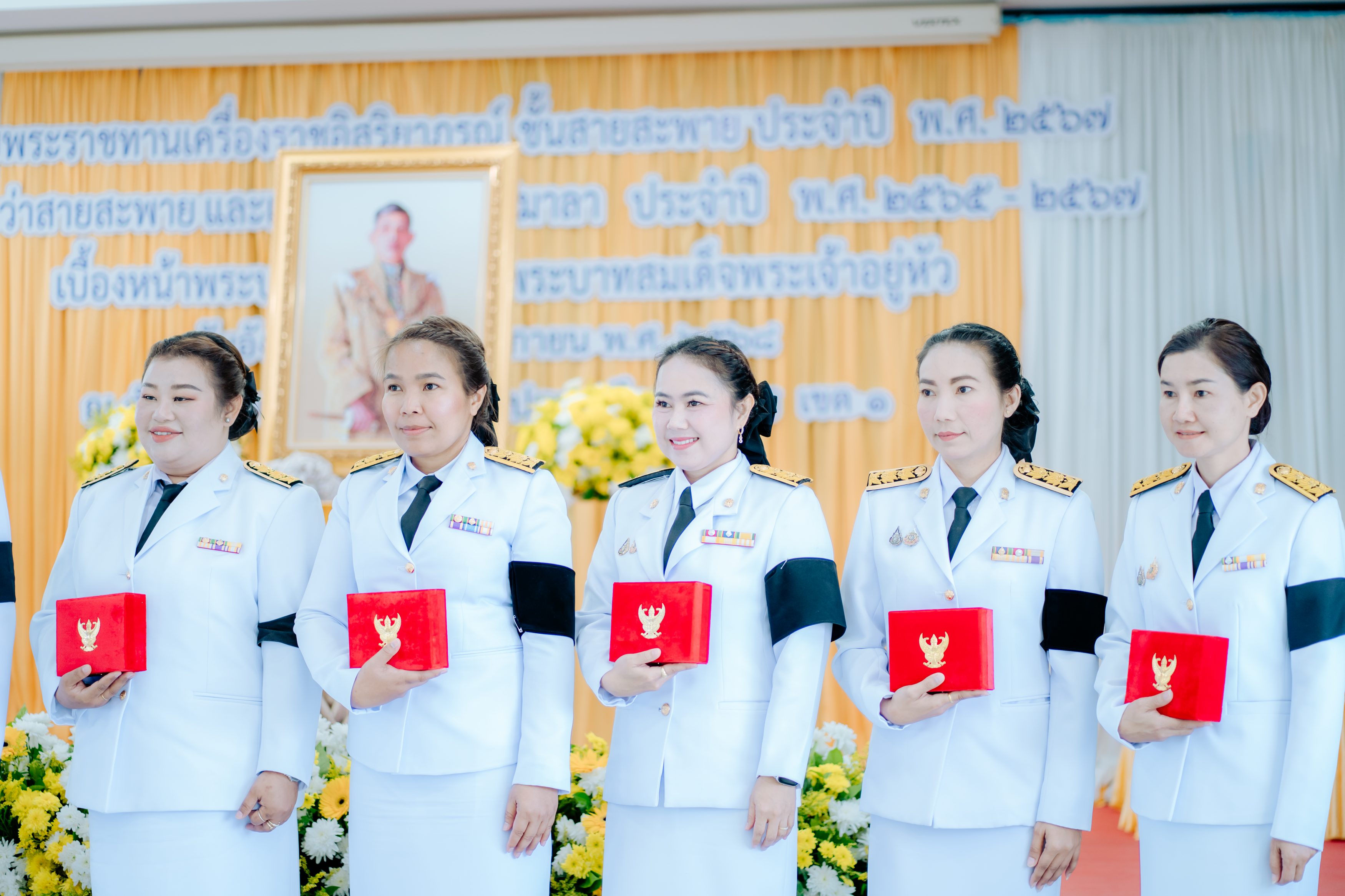 พิธีรับพระราชทานเครื่องราชอิสริยาภรณ์ชั้นสายสะพาย ประจำปี 2567 และชั้นต่ำกว่าสายสะพายและเหรียญจักรพรรดิมาลา ประจำปี 2565 – 2567 เบื้องหน้าพระบรมฉายาลักษณ์ พระบาทสมเด็จพระเจ้าอยู่หัว