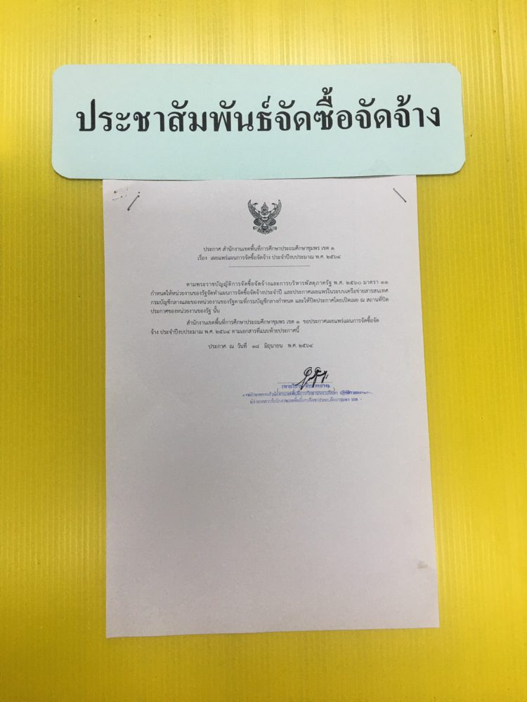 ประกาศเผยแพร่แผนการจัดซื้อจัดจ้างบนเว็บไซด์ของ สพป.ชพ.1