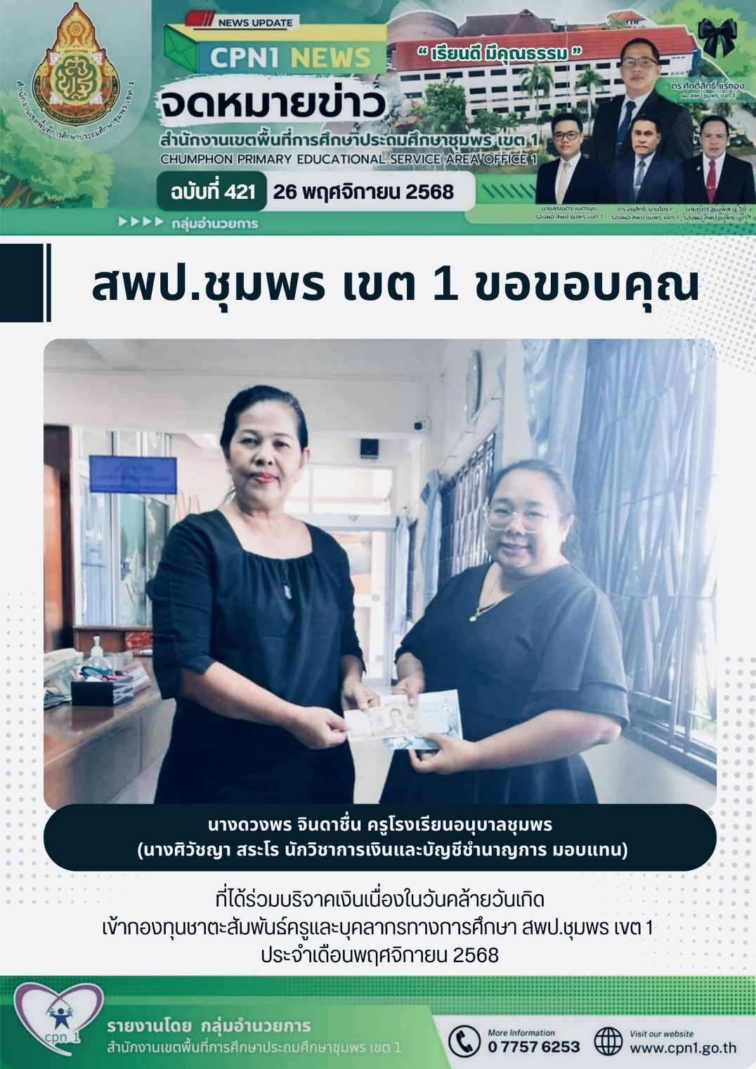 ที่ได้ร่วมบริจาคเงินเนื่องในวันคล้ายวันเกิดเข้ากองทุนชาตะสัมพันธ์ครูและบุคลากรทางการศึกษา สพป.ชุมพร เขต 1 ประจำเดือนพฤศจิกายน 2568