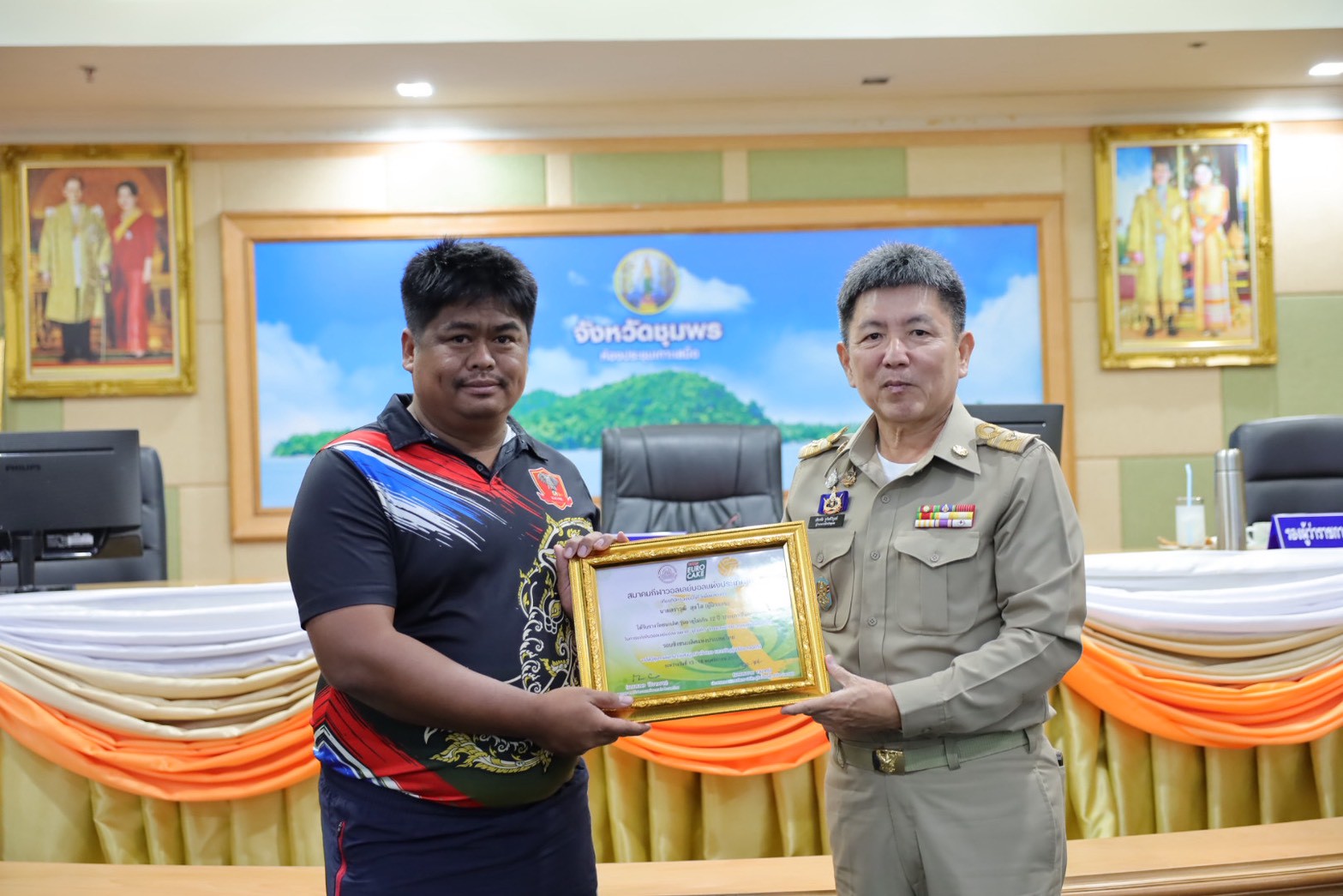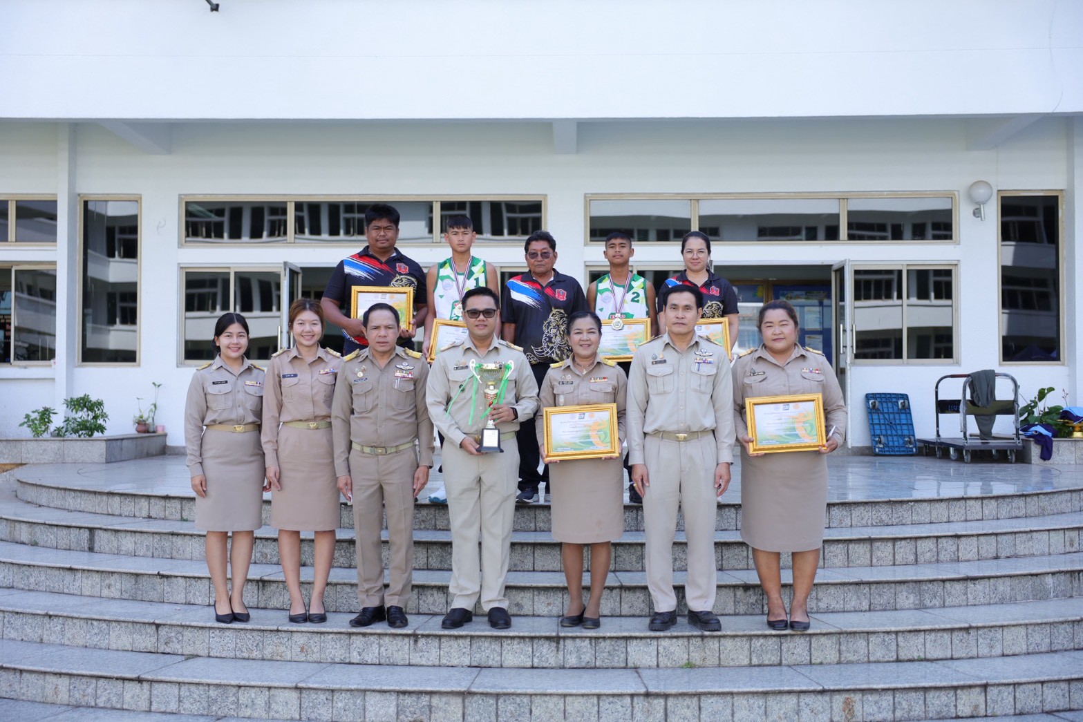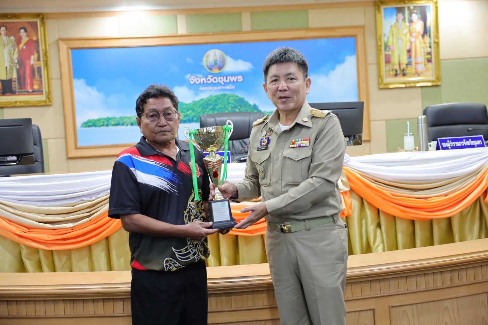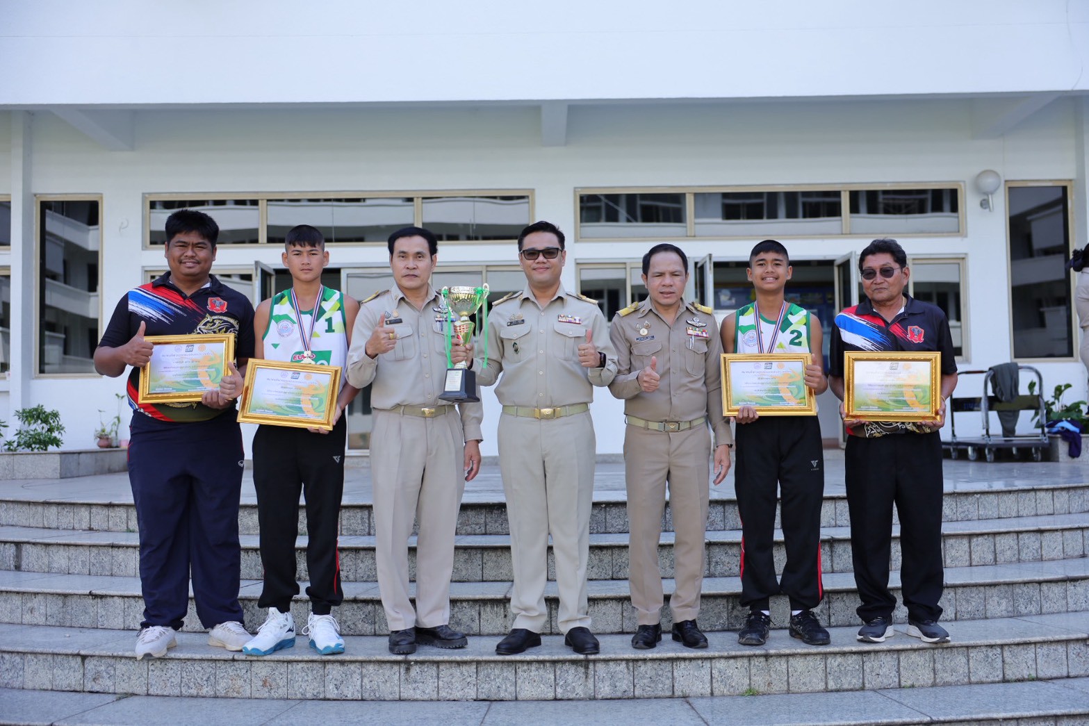 >>> วันที่ 27 พฤศจิกายน 2568 เวลา 10.00 น. ดร.ศักดิ์สิทธิ์ แร่ทอง ผู้อำนวยการสำนักงานเขตพื้นที่การศึกษาประถมศึกษาชุมพร เขต 1 มอบหมายให้ นายสุรเนตร เนตรมุข ดร.อนุสิทธิ์ นามโยธา และ นายณรรฐธนพล ปะจีน รองผู้อำนวยการสำนักงานเขตพื้นที่การศึกษาประถมศึกษาชุมพร เขต 1 ร่วมแสดงความยินดีกับโรงเรียนบ้านงาช้าง ที่ได้รับรางวัลชนะเลิศ การแข่งขัน"ยูโร่เค้ก" ไทยแลนด์ บีช วอลเลย์บอล 2025 รุ่นอายุ ไม่เกิน 12 ปี ประเภททีมชาย รอบชิงชนะเลิศแห่งประเทศไทย ณ ห้องประชุมเกาะเสม็ด ชั้น 4 ศาลากลางจังหวัดชุมพร อำเภอเมืองชุมพร จังหวัดชุมพร โดยมี นายเธียรชัย ชูกิตติวิบูลย์ ผู้ว่าราชการจังหวัดชุมพร ให้เกียรติมอบถ้วยรางวัลชนะเลิศจากสมาคมกีฬาวอลเลย์บอลแห่งประเทศไทย พร้อมเหรียญรางวัลชนะเลิศและเกียรติบัตร ให้กับคณะนักกีฬา ก่อนการประชุมคณะกรมการจังหวัด หัวหน้าส่วนราชการ หัวหน้าหน่วยงานรัฐวิสาหกิจ นายอำเภอ ผู้บริหารท้องถิ่น และภาคเอกชน ซึ่งถือเป็นการประกาศเกียรติคุณที่โรงเรียนบ้านงาช้างได้สร้างชื่อเสียงให้แก่จังหวัดชุมพรในระดับประเทศ >>>