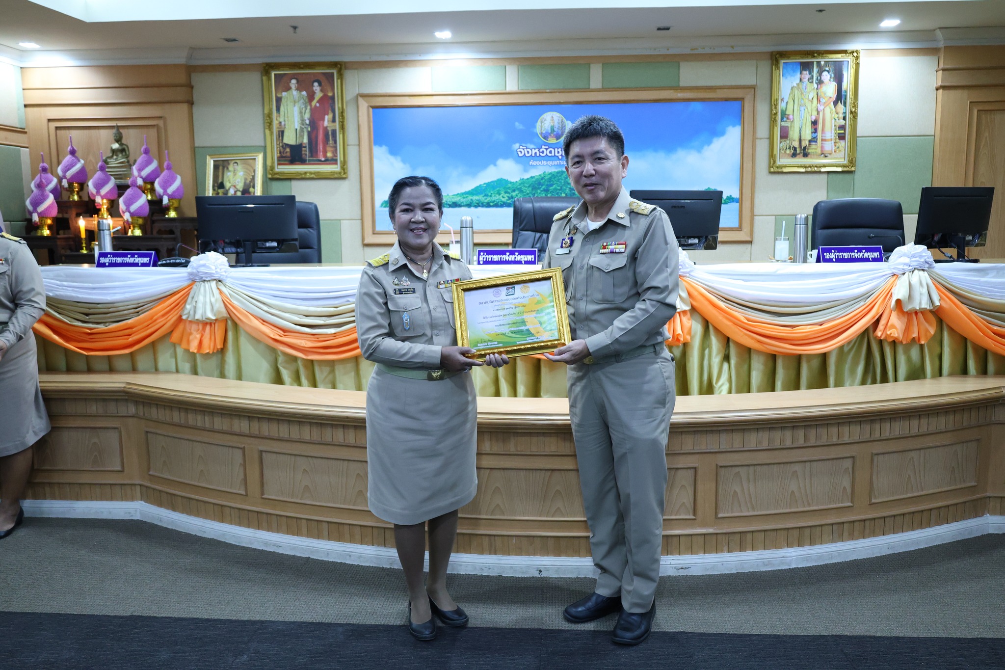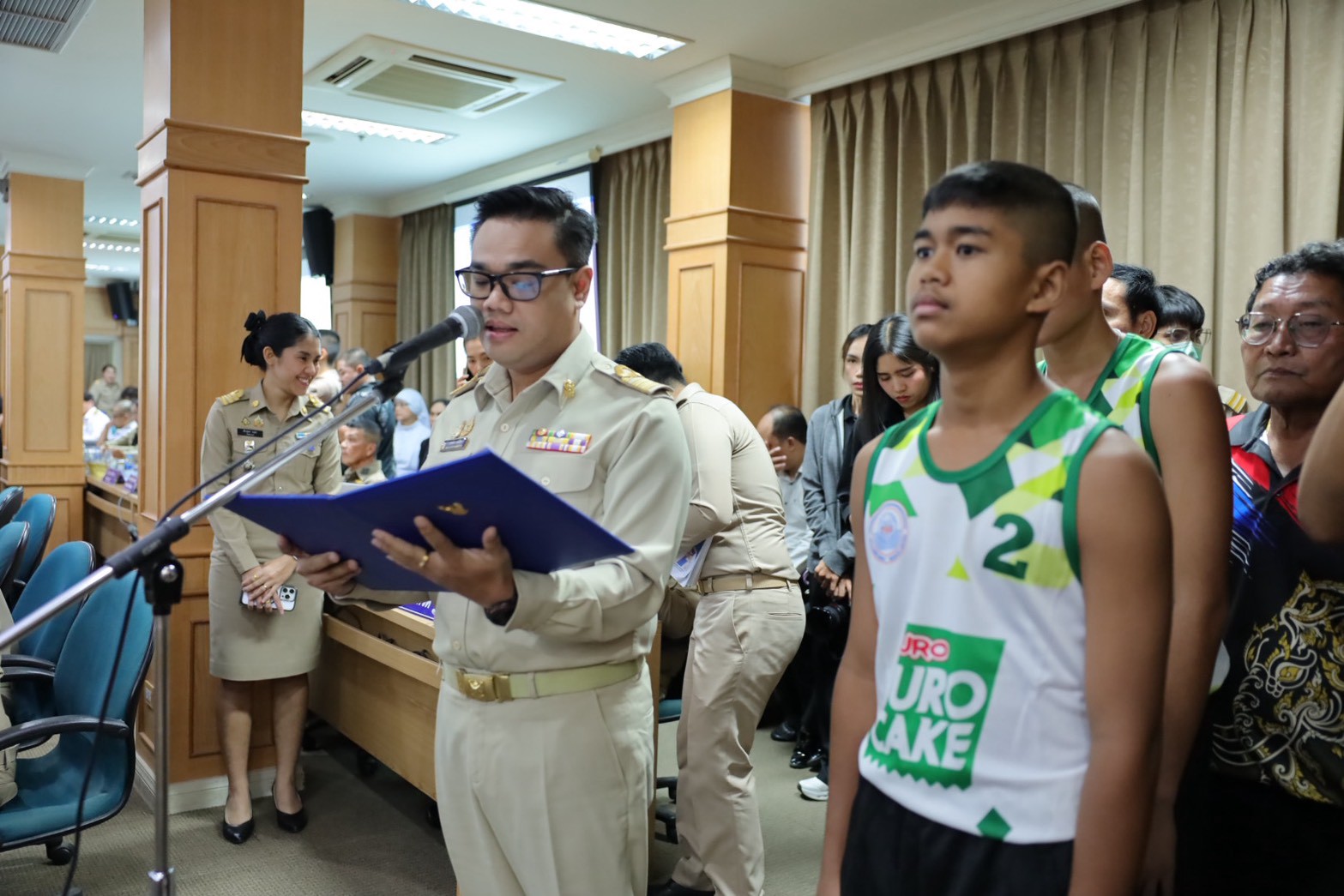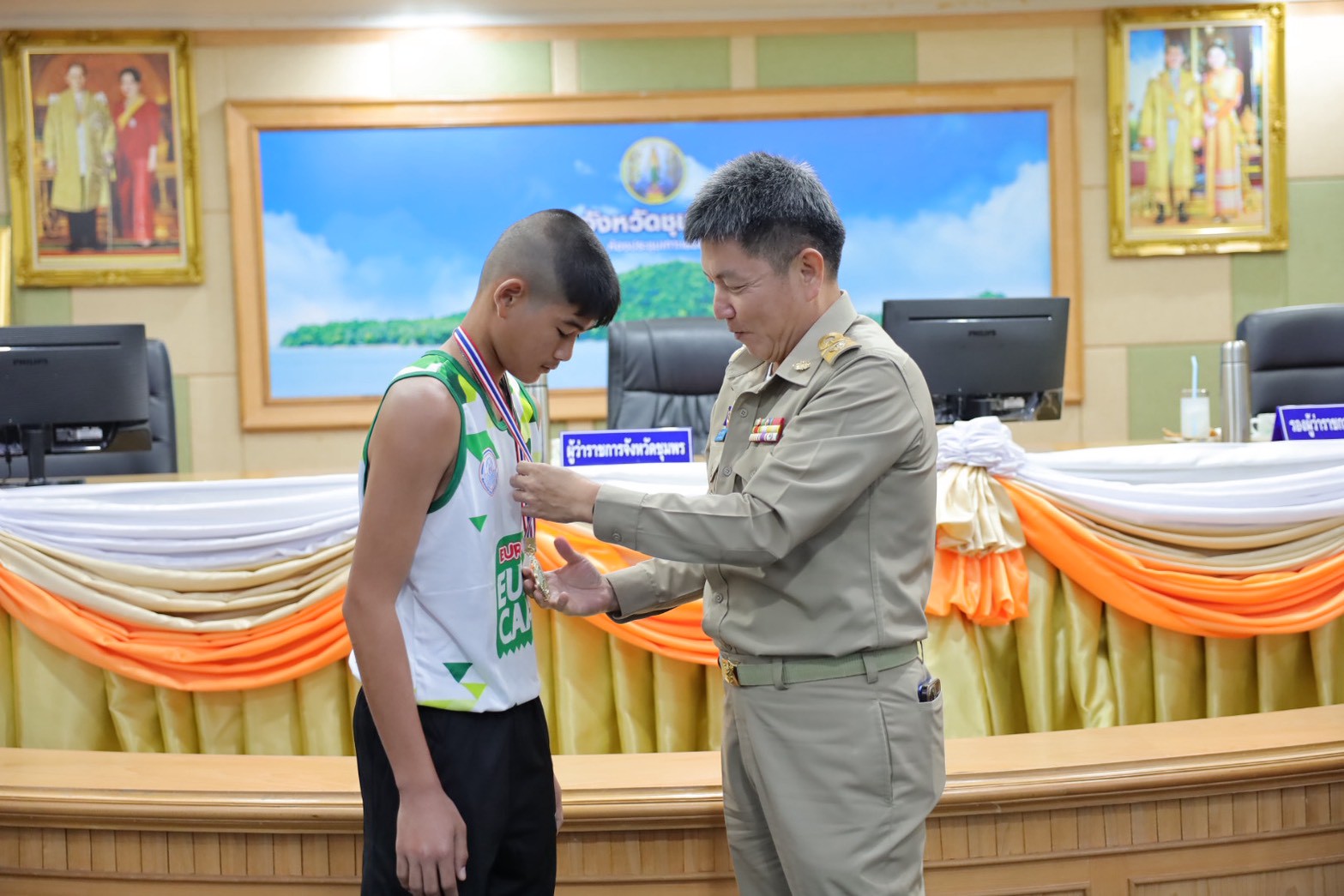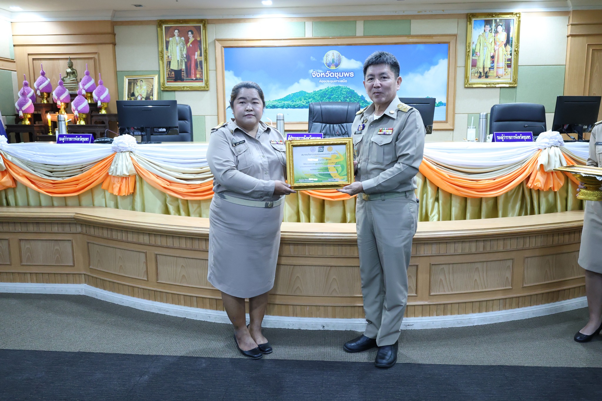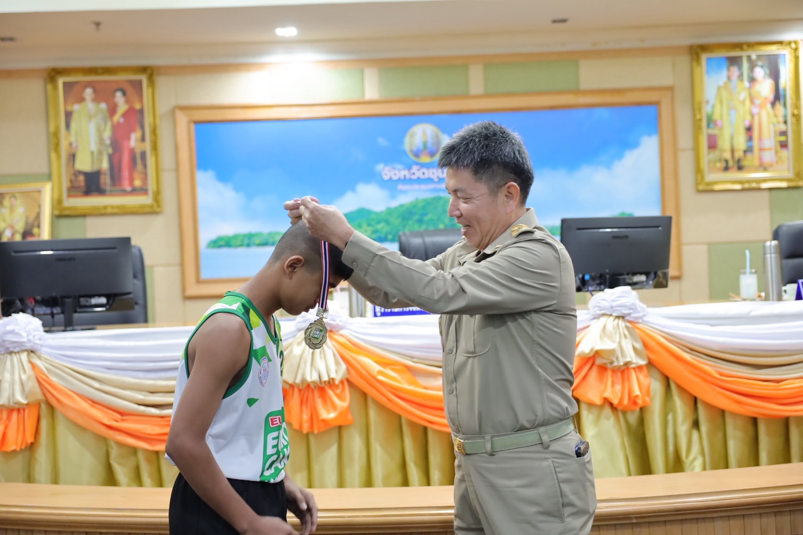 >>> วันที่ 27 พฤศจิกายน 2568 เวลา 10.00 น. ดร.ศักดิ์สิทธิ์ แร่ทอง ผู้อำนวยการสำนักงานเขตพื้นที่การศึกษาประถมศึกษาชุมพร เขต 1 มอบหมายให้ นายสุรเนตร เนตรมุข ดร.อนุสิทธิ์ นามโยธา และ นายณรรฐธนพล ปะจีน รองผู้อำนวยการสำนักงานเขตพื้นที่การศึกษาประถมศึกษาชุมพร เขต 1 ร่วมแสดงความยินดีกับโรงเรียนบ้านงาช้าง ที่ได้รับรางวัลชนะเลิศ การแข่งขัน"ยูโร่เค้ก" ไทยแลนด์ บีช วอลเลย์บอล 2025 รุ่นอายุ ไม่เกิน 12 ปี ประเภททีมชาย รอบชิงชนะเลิศแห่งประเทศไทย ณ ห้องประชุมเกาะเสม็ด ชั้น 4 ศาลากลางจังหวัดชุมพร อำเภอเมืองชุมพร จังหวัดชุมพร โดยมี นายเธียรชัย ชูกิตติวิบูลย์ ผู้ว่าราชการจังหวัดชุมพร ให้เกียรติมอบถ้วยรางวัลชนะเลิศจากสมาคมกีฬาวอลเลย์บอลแห่งประเทศไทย พร้อมเหรียญรางวัลชนะเลิศและเกียรติบัตร ให้กับคณะนักกีฬา ก่อนการประชุมคณะกรมการจังหวัด หัวหน้าส่วนราชการ หัวหน้าหน่วยงานรัฐวิสาหกิจ นายอำเภอ ผู้บริหารท้องถิ่น และภาคเอกชน ซึ่งถือเป็นการประกาศเกียรติคุณที่โรงเรียนบ้านงาช้างได้สร้างชื่อเสียงให้แก่จังหวัดชุมพรในระดับประเทศ >>>