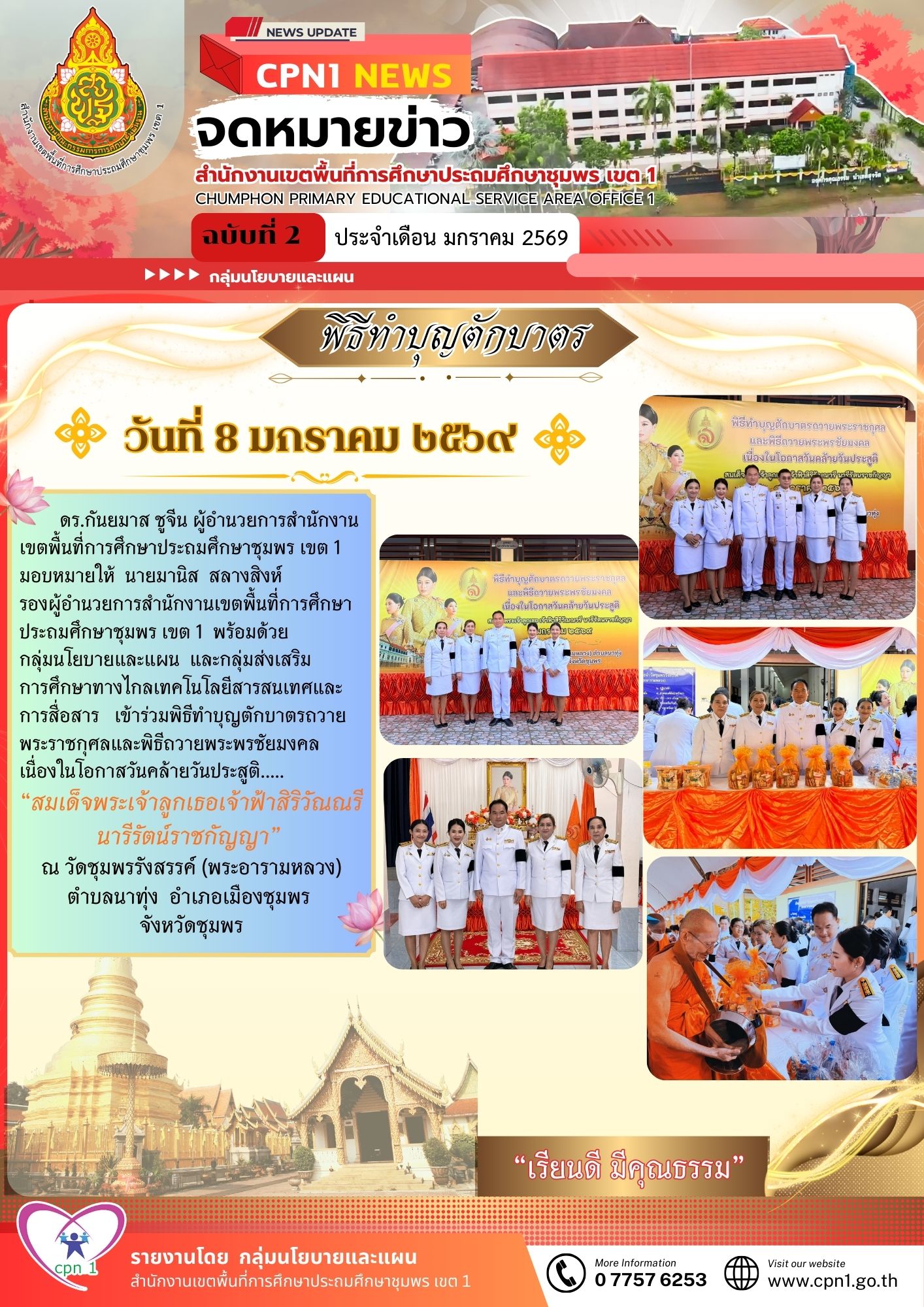 ดร.กันยมาส ชูจีน ผู้อำนวยการสำนักงานเขตพื้นที่การศึกษาประถมศึกษาชุมพร เขต 1 มอบหมายให้ นายมานิส สลางสิงห์รองผู้อำนวยการสำนักงานเขตพื้นที่การศึกษาประถมศึกษาชุมพร เขต 1พร้อมด้วย