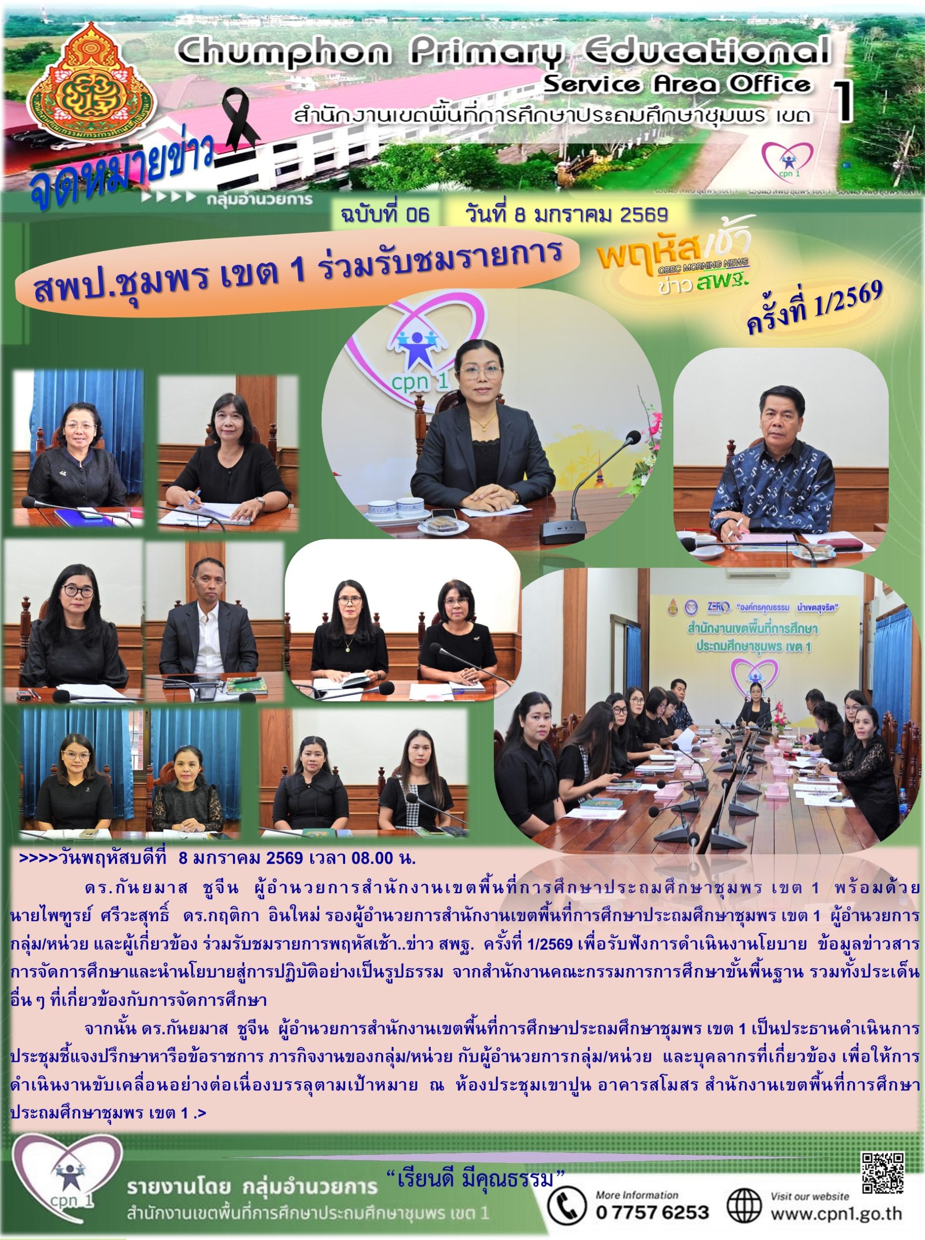 สพป.ชุมพร เขต 1 ร่วมรับชมรายการพฤหัสเช้า ข่าว สพฐ.ครั้งที่ 1/2569