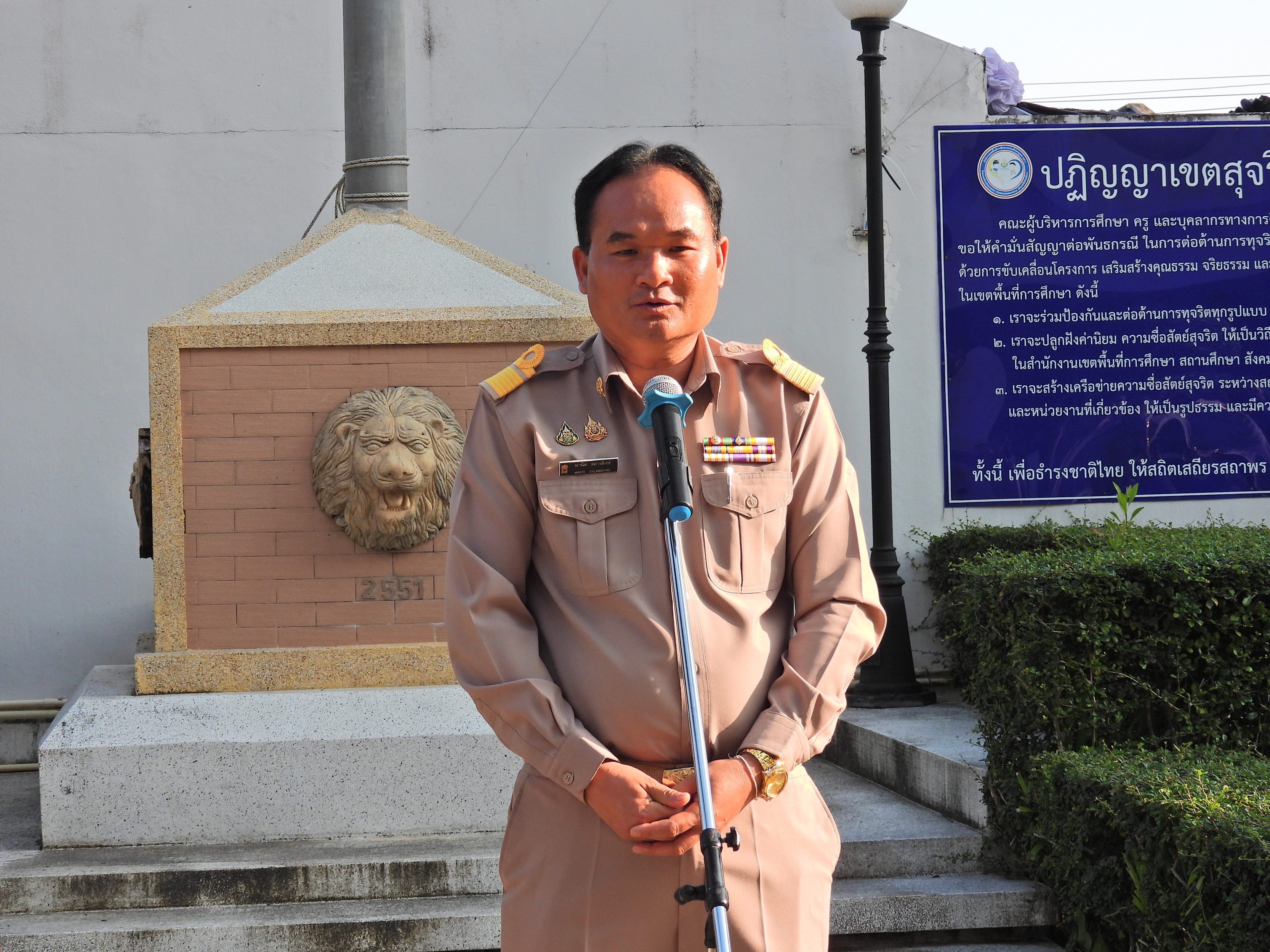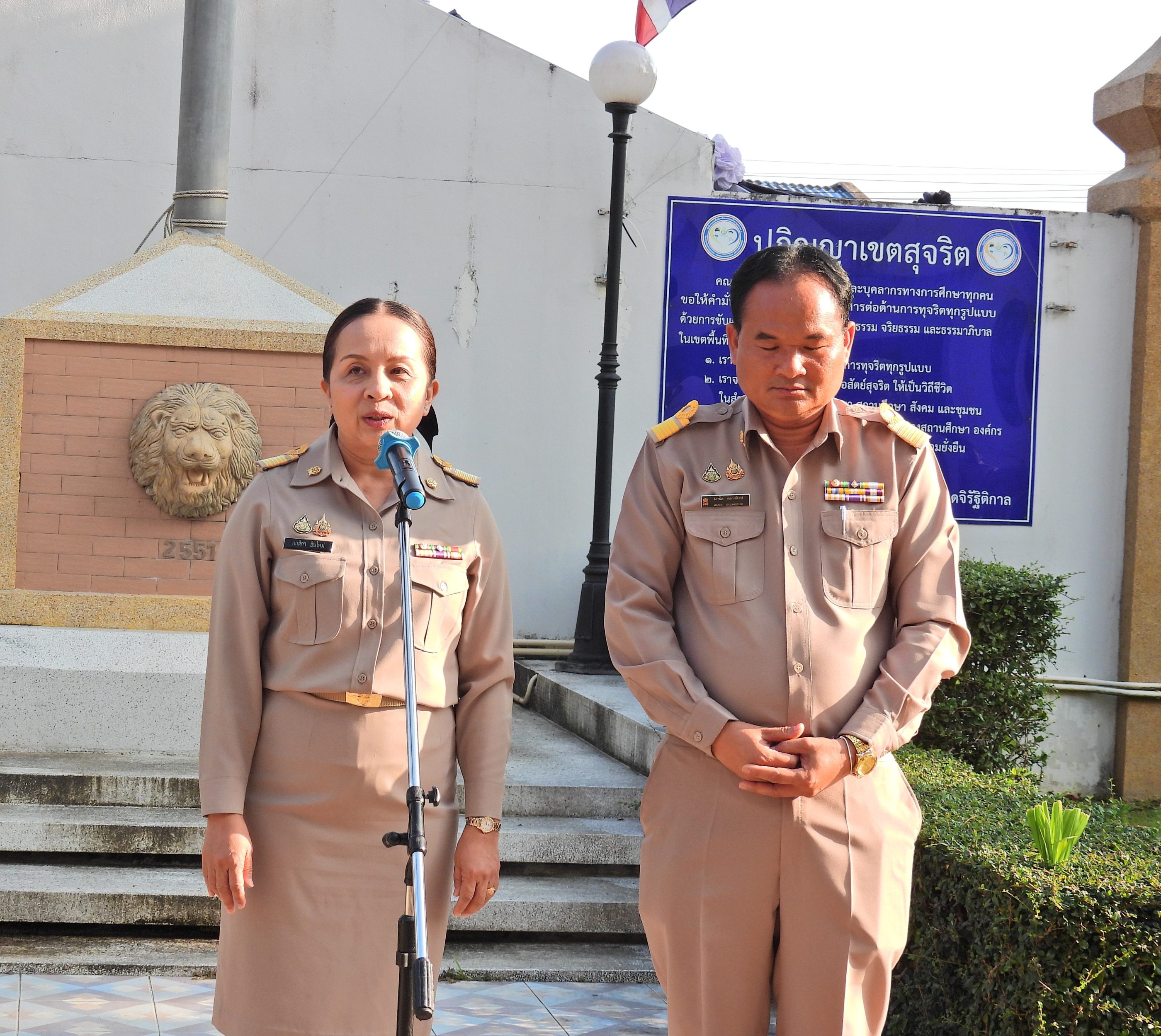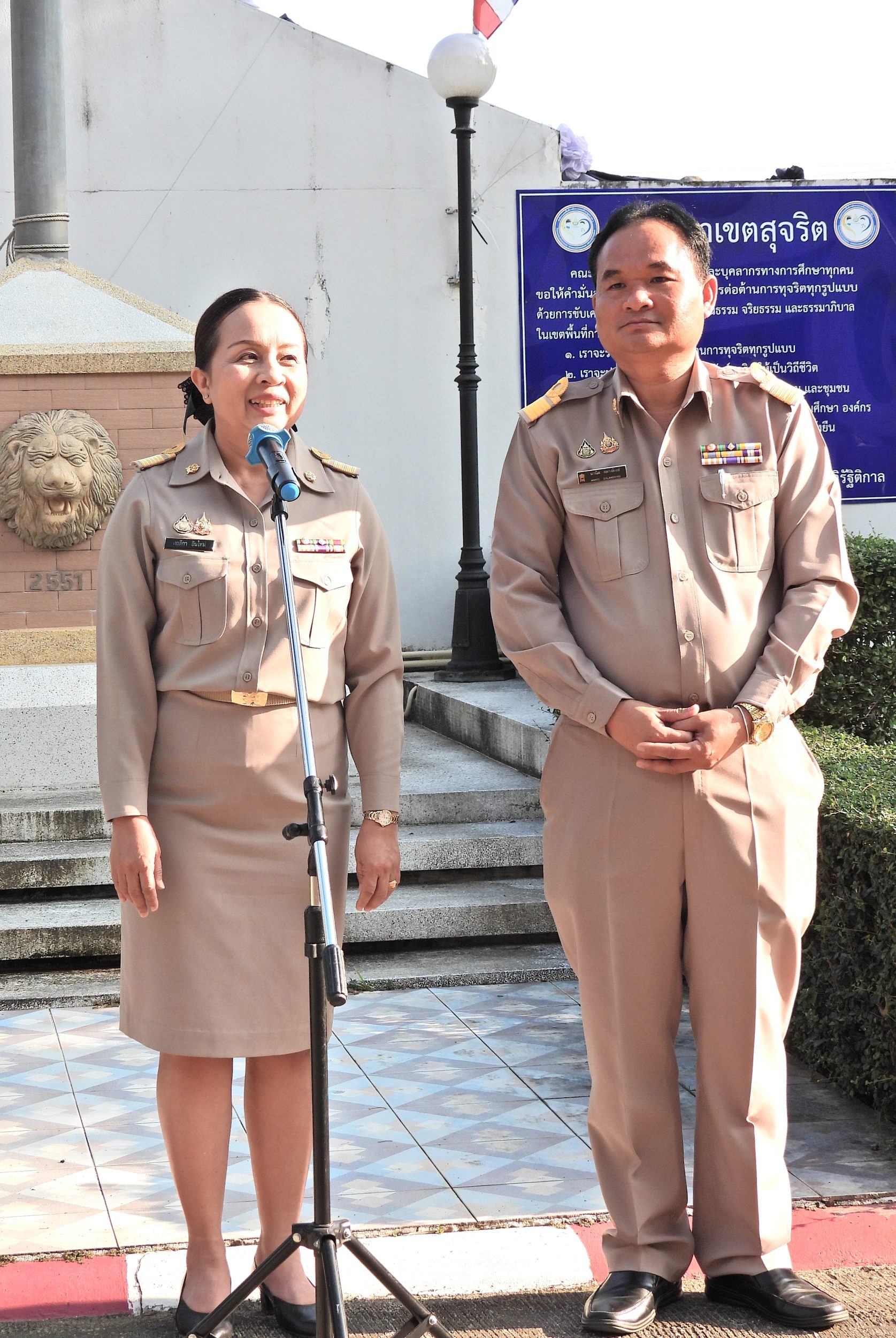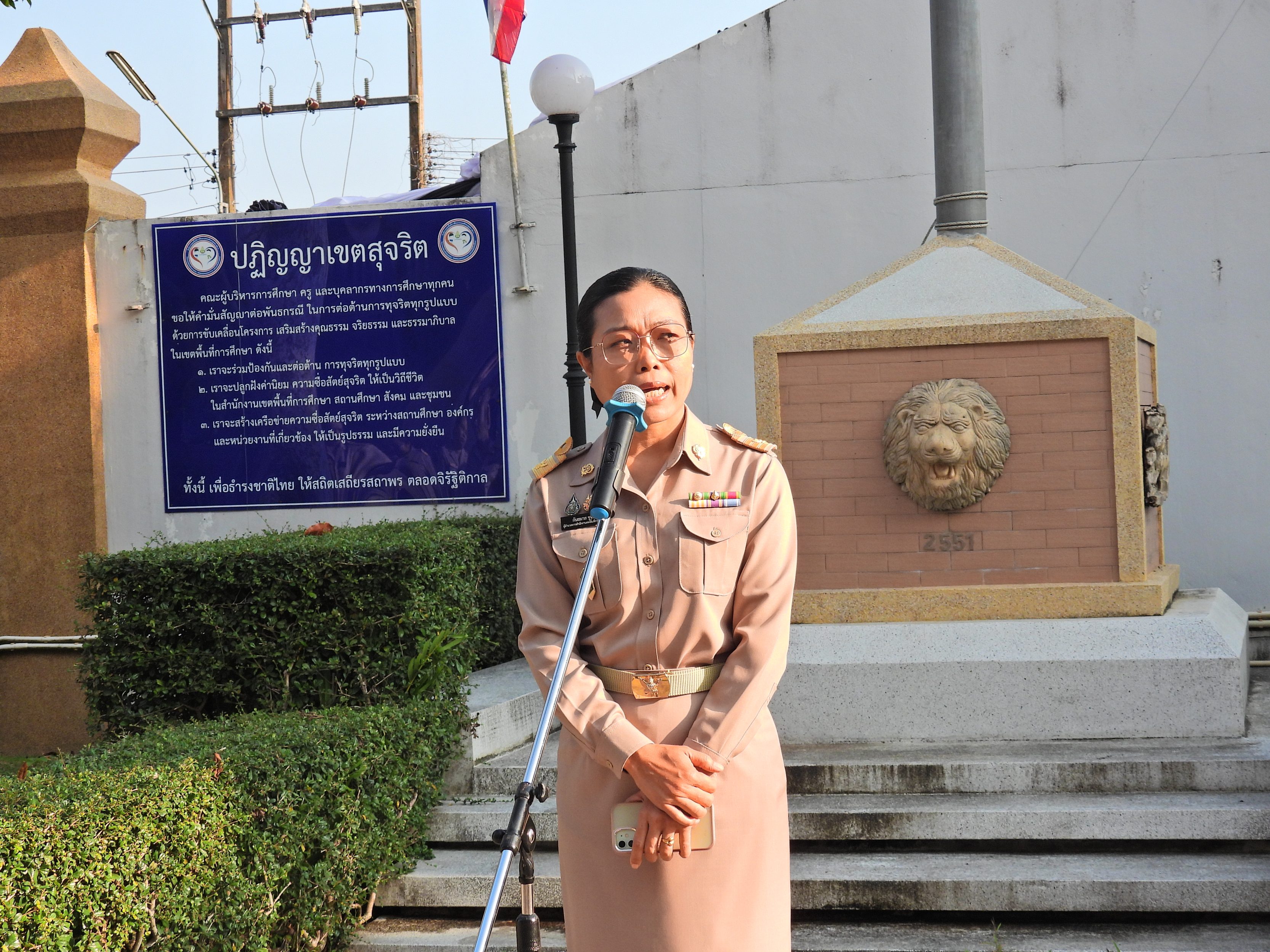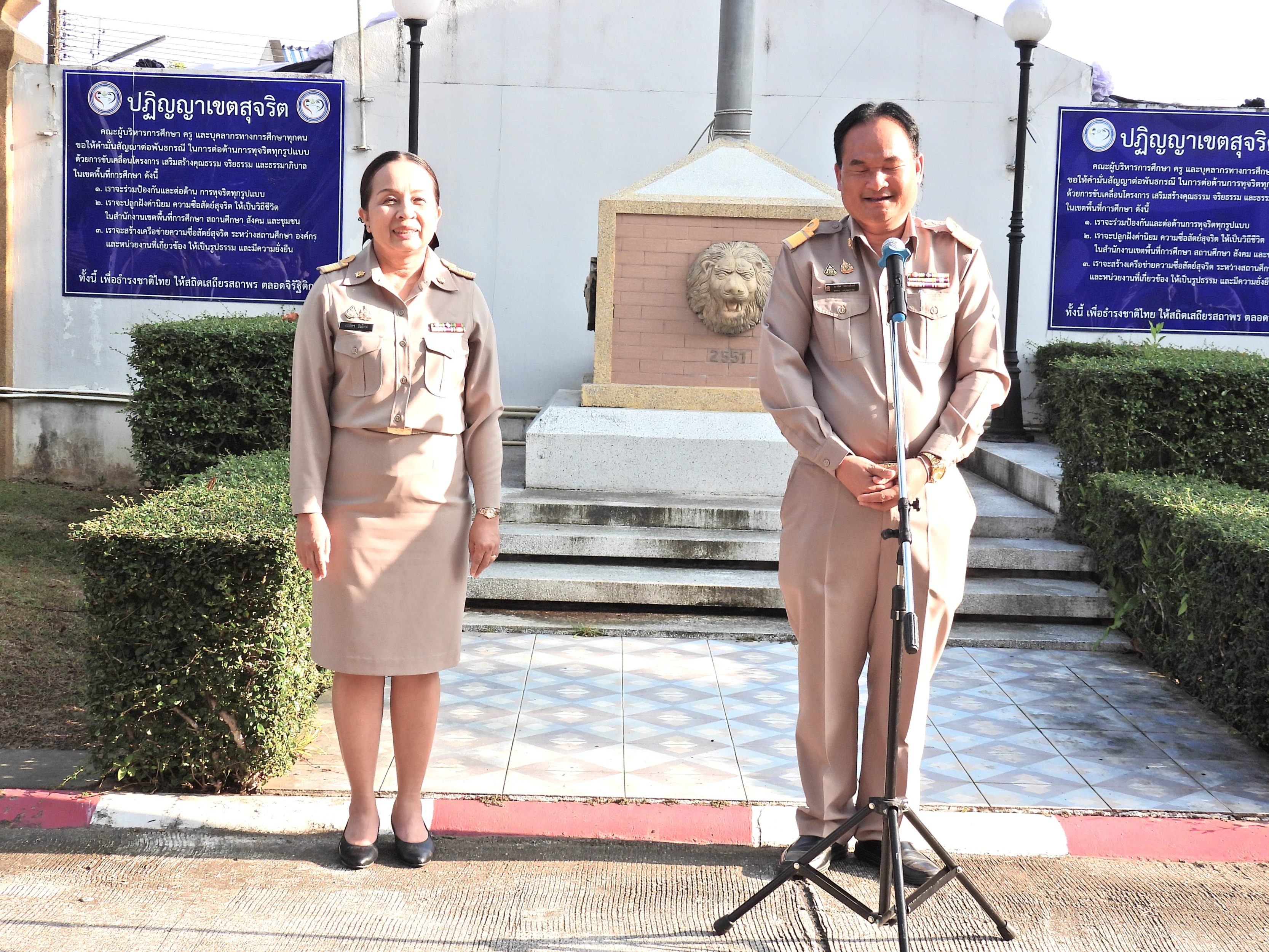 วันจันทร์ที่ 12 มกราคม 2569 เวลา 08.30 น. ดร.กันยมาส ชูจีน ผู้อำนวยการสำนักงานเขตพื้นที่การศึกษาประถมศึกษาชุมพร เขต 1 พร้อมด้วย นายมานิส สลางสิงห์ ดร.กฤติกา อินใหม่ รอง ผอ.สพป.ชุมพร เขต 1 ผู้อำนวยการกลุ่ม/หน่วย และบุคลากรใน สพป.ชุมพร เขต 1 ร่วมกิจกรรมเข้าแถวเคารพธงชาติ บูชาพระรัตนตรัย และกล่าวคำปฏิญญาเขตสุจริต เพื่อให้ทุกคนได้ตระหนักและเห็นคุณค่า ของชาติ สร้างความรัก สามัคคีให้เกิดในหน่วยงาน สร้างวินัย รู้หน้าที่ ความรับผิดชอบ ปฏิบัติดีปฏิบัติชอบ ภายใต้คุณธรรม นำความรู้ เพื่อสร้างและรักษาเอกลักษณ์ขององค์กร แสดงออกเชิงสัญลักษณ์ในการขับเคลื่อนโครงการเสริมสร้างคุณธรรม จริยธรรม และธรรมาภิบาลในเขตพื้นที่การศึกษา "ป้องกันการทุจริต" (เขตสุจริต)