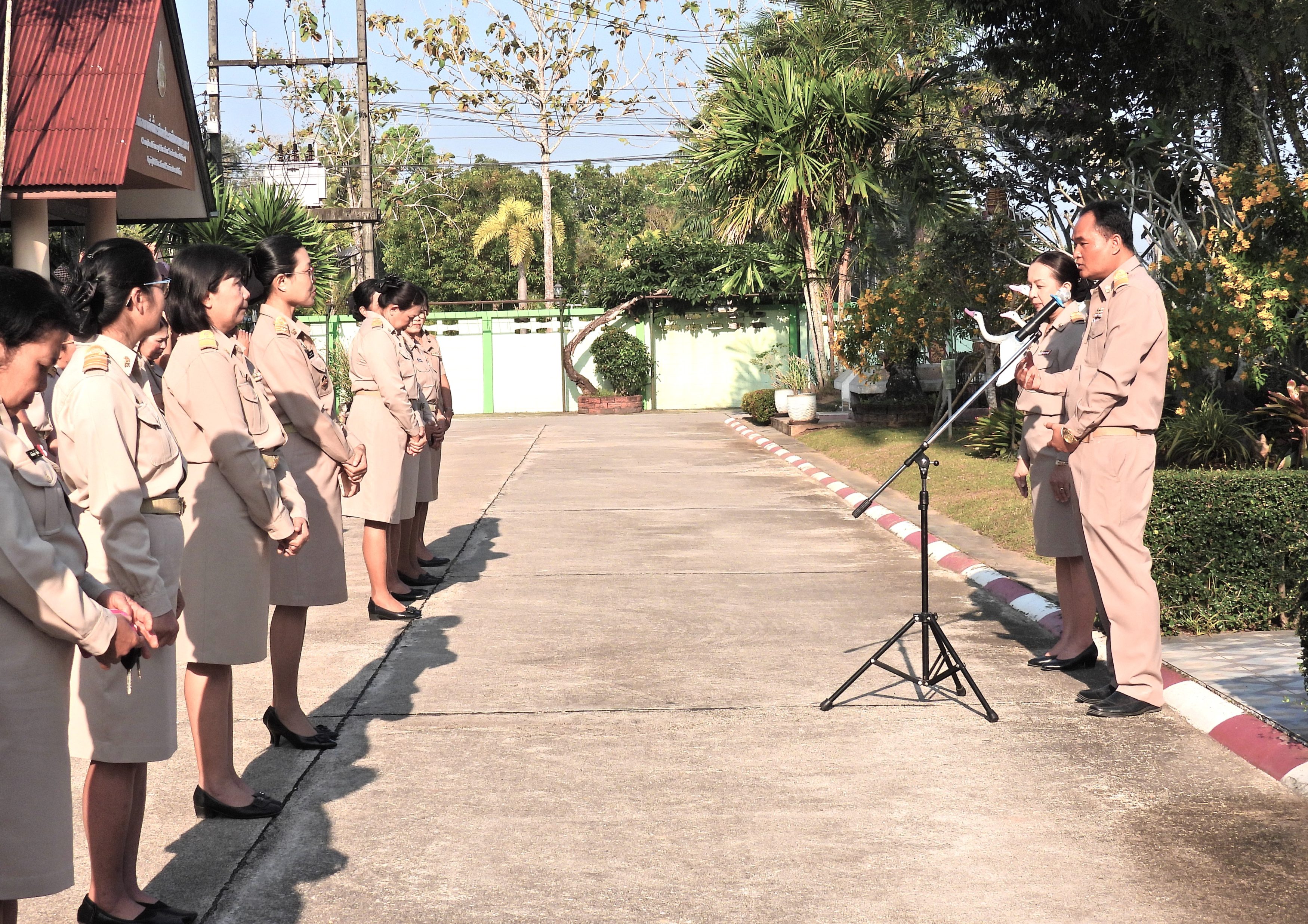 จากนั้น ผอ.สพป.ชุมพร เขต 1 และ รอง ผอ.สพป.ชุมพร เขต 1 ทั้ง 2 ท่าน กล่าวทักทายบุคลากรในสำนักงานเขตพื้นที่การศึกษาประถมศึกษาชุมพร เขต 1 พร้อมทั้งพูดถึงแนวทางในการปฏิบัติงาน ภารกิจงานต่างๆ เพื่อให้การดำเนินงานขับเคลื่อนเป็นไปอย่างต่อเนื่องบรรลุตามวัตถุประสงค์และเป้าหมายที่ได้วางแผนไว้ได้อย่างสำเร็จลุล่วง ณ บริเวณหน้าอาคารสำนักงานเขตพื้นที่การศึกษาประถมศึกษาชุมพร เขต 1.>>>>