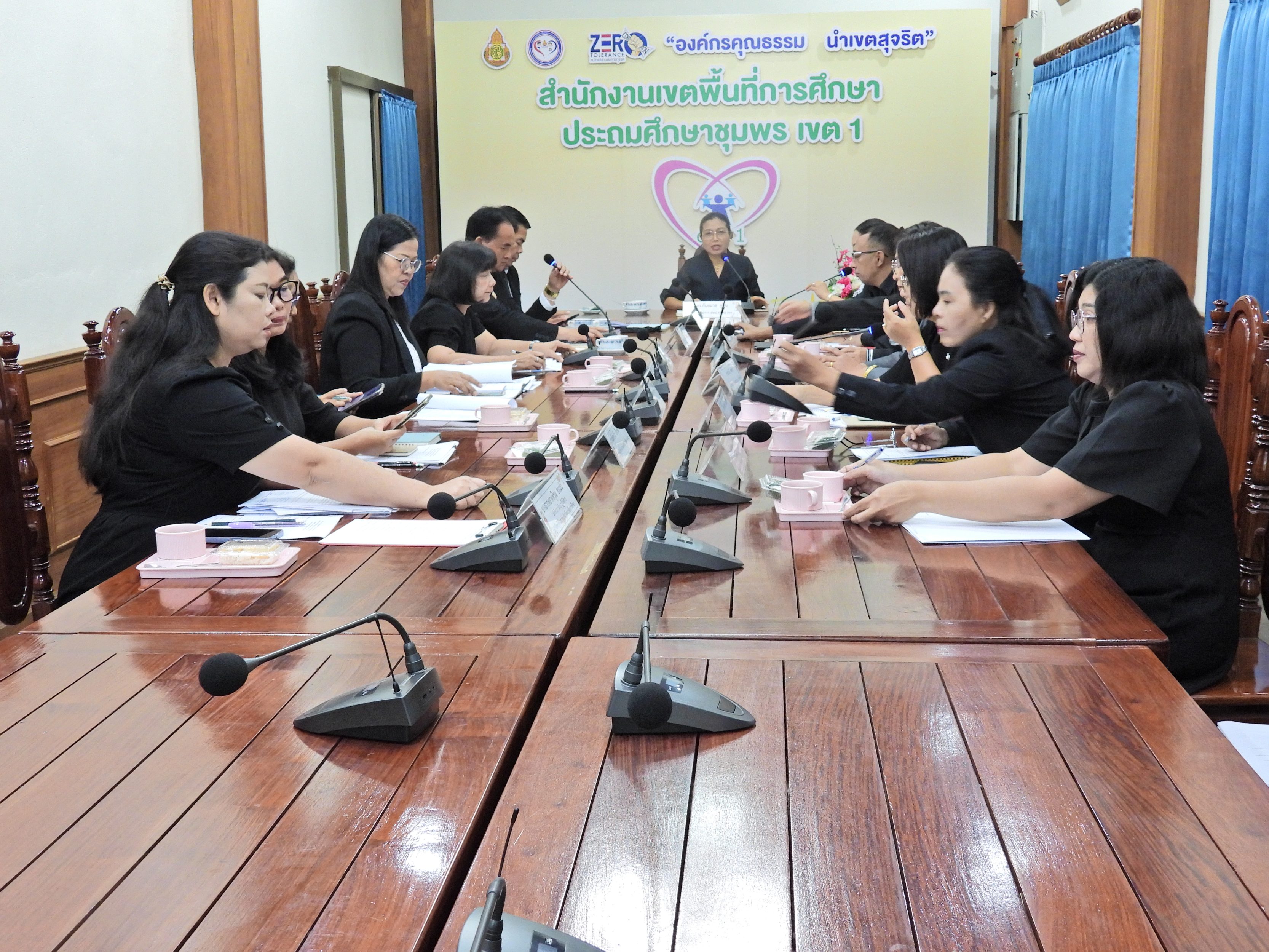 >> ดร.กันยมาส ชูจีน ผู้อำนวยการสำนักงานเขตพื้นที่การศึกษาประถมศึกษาชุมพร เขต 1 พร้อมด้วย นายไพฑูรย์ ศรีวะสุทธิ์ นายมานิส สลางสิงห์ และ ดร.กฤติกา อินใหม่ รองผู้อำนวยการสำนักงานเขตพื้นที่การศึกษาประถมศึกษาชุมพร เขต 1 ร่วมรับฟังข้อราชการ และแนวปฏิบัติการดำเนินการความเคลื่อนไหวต่างๆ จาก สพฐ. พร้อมด้วย ผู้อำนวยการ กลุ่ม/หน่วย และผู้ที่เกี่ยวข้องร่วมรับชมรายการ พฤหัสเช้า ข่าว สพฐ. ครั้งที่ 2/2569 จากนั้นที่ประชุมได้ชี้แจงปรึกษาหารือข้อราชการ ภารกิจงานของแต่ละกลุ่ม เพื่อให้การดำเนินงานขับเคลื่อน เป็นไปอย่างต่อเนื่อง บรรลุตามเป้าหมาย ณ ห้องประชุมเขาปูน อาคารสโมสร สำนักงานเขตพื้นที่การศึกษาประถมศึกษาชุมพร เขต 1 .