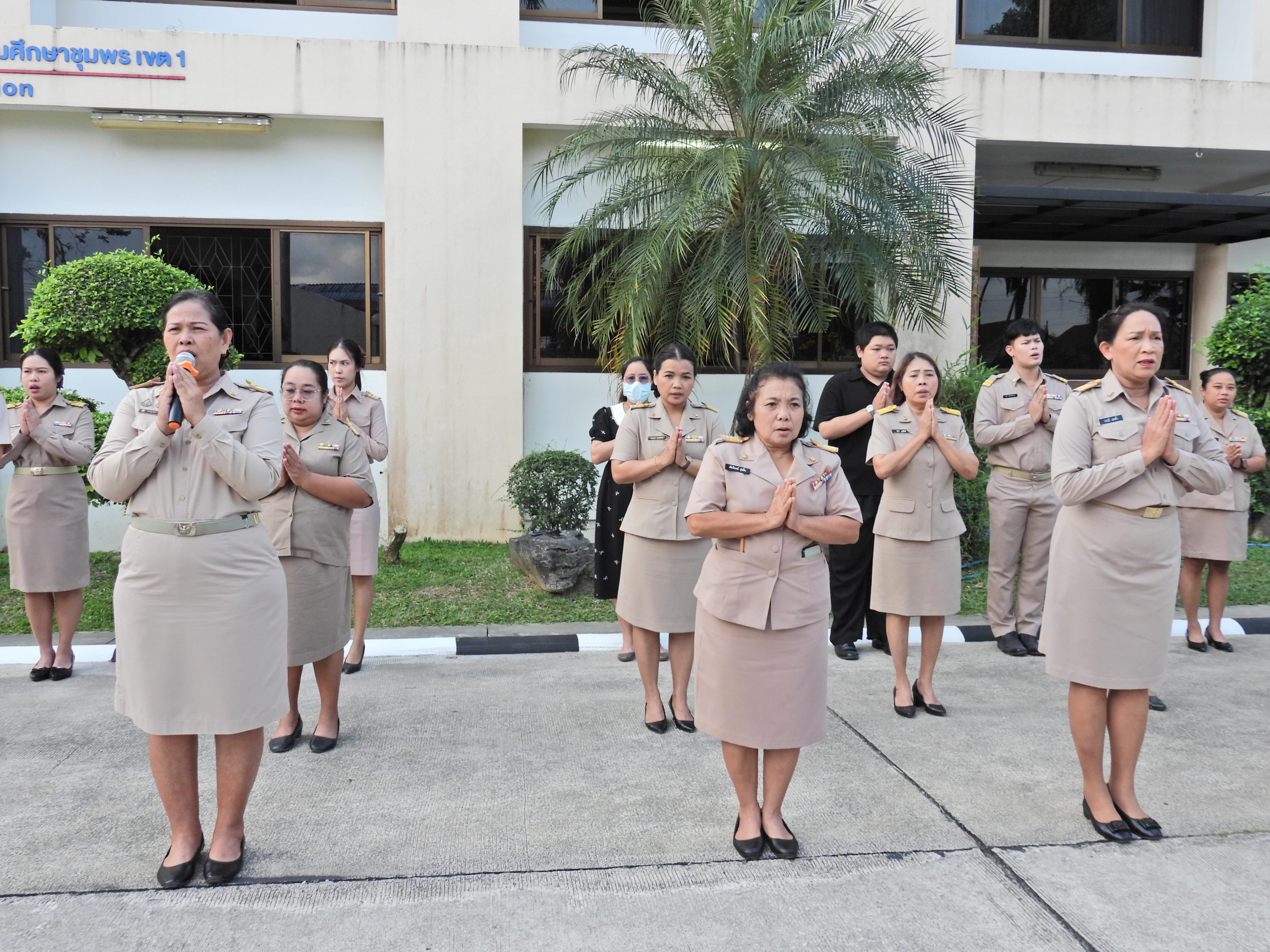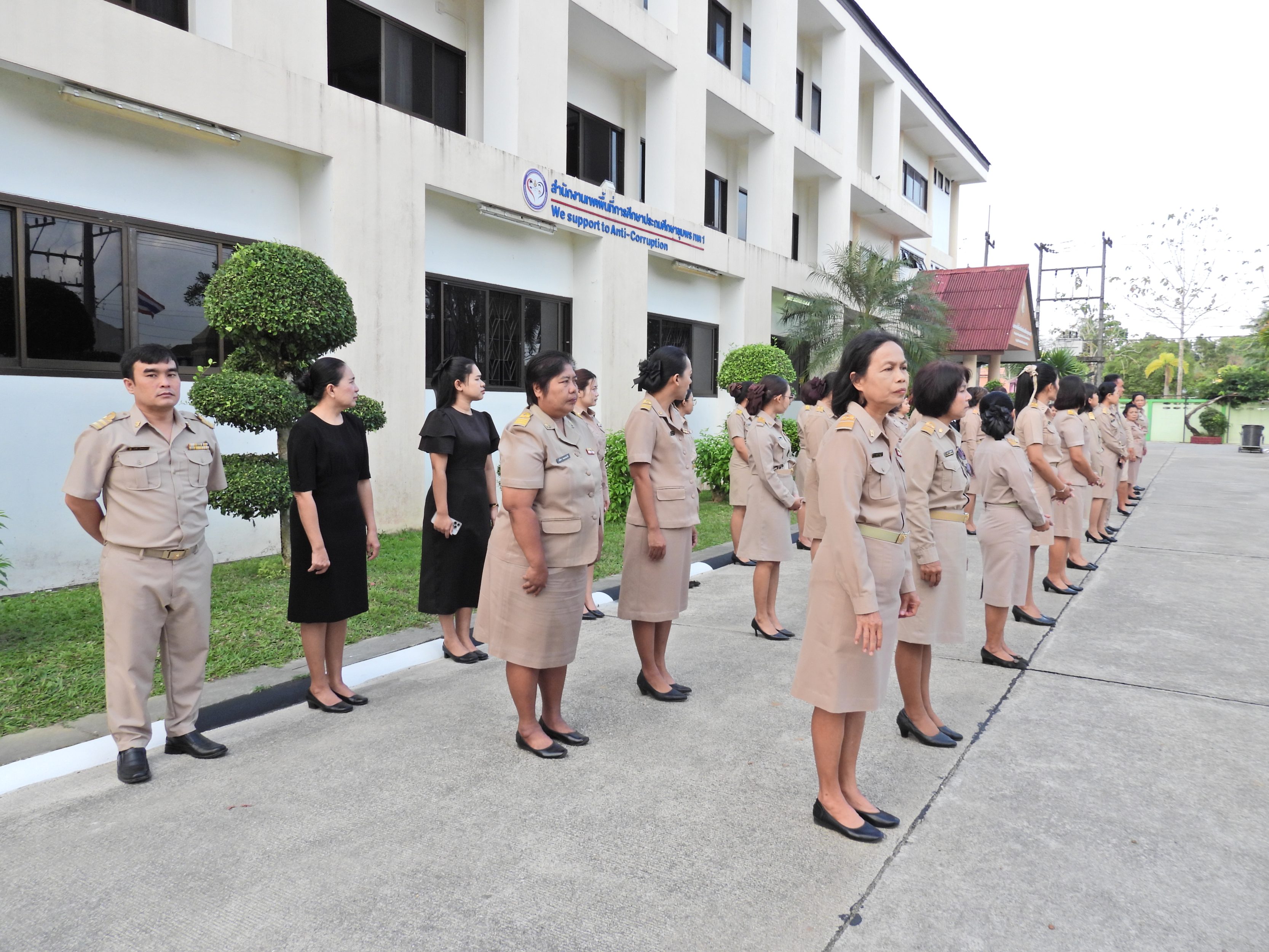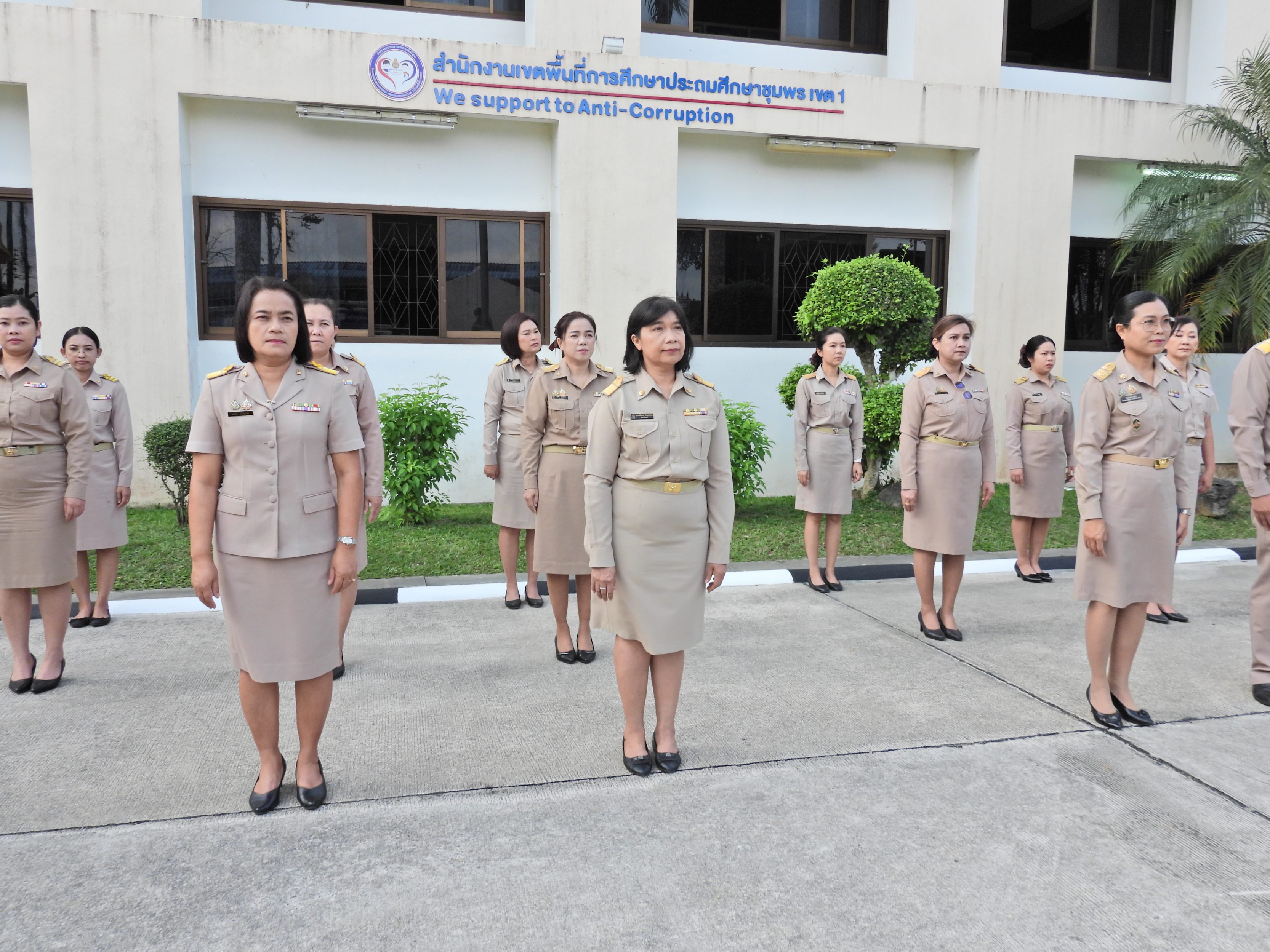 วันจันทร์ที่ 9 กุมภาพันธ์ 2569 เวลา 08.30 น. ดร.กันยมาส ชูจีน ผู้อำนวยการสำนักงานเขตพื้นที่การศึกษาประถมศึกษาชุมพร เขต 1 นายมานิส สลางสิงห์ รอง ผอ.สพป.ชุมพร เขต 1 ผู้อำนวยการกลุ่ม/หน่วย และบุคลากรใน สพป.ชุมพร เขต 1 ร่วมกิจกรรมเข้าแถวเคารพธงชาติ บูชาพระรัตนตรัย ร้องเพลงสรรเสริญพระบารมี และกล่าวคำปฏิญญาเขตสุริต เพื่อให้ทุกคนได้ตระหนักและเห็นคุณค่าของชาติ สร้างความรัก สามัคคี ให้เกิดในหน่วยงาน สร้างวินัย รู้หน้าที่ ความรับผิดชอบ ปฏิบัติดี ปฏิบัติชอบ ภายใต้คุณธรรมนำความรู้ เพื่อสร้างและรักษาเอกลักษณ์ขององค์กร แสดงออกเชิงสัญลักษณ์ในการขับเคลื่อนโครงการเสริมสร้างคุณธรรม จริยธรรม และธรรมาภิบาล ในเขตพื้นที่การศึกษา "ป้องกันการทุจริต" (เขตสุจริต)