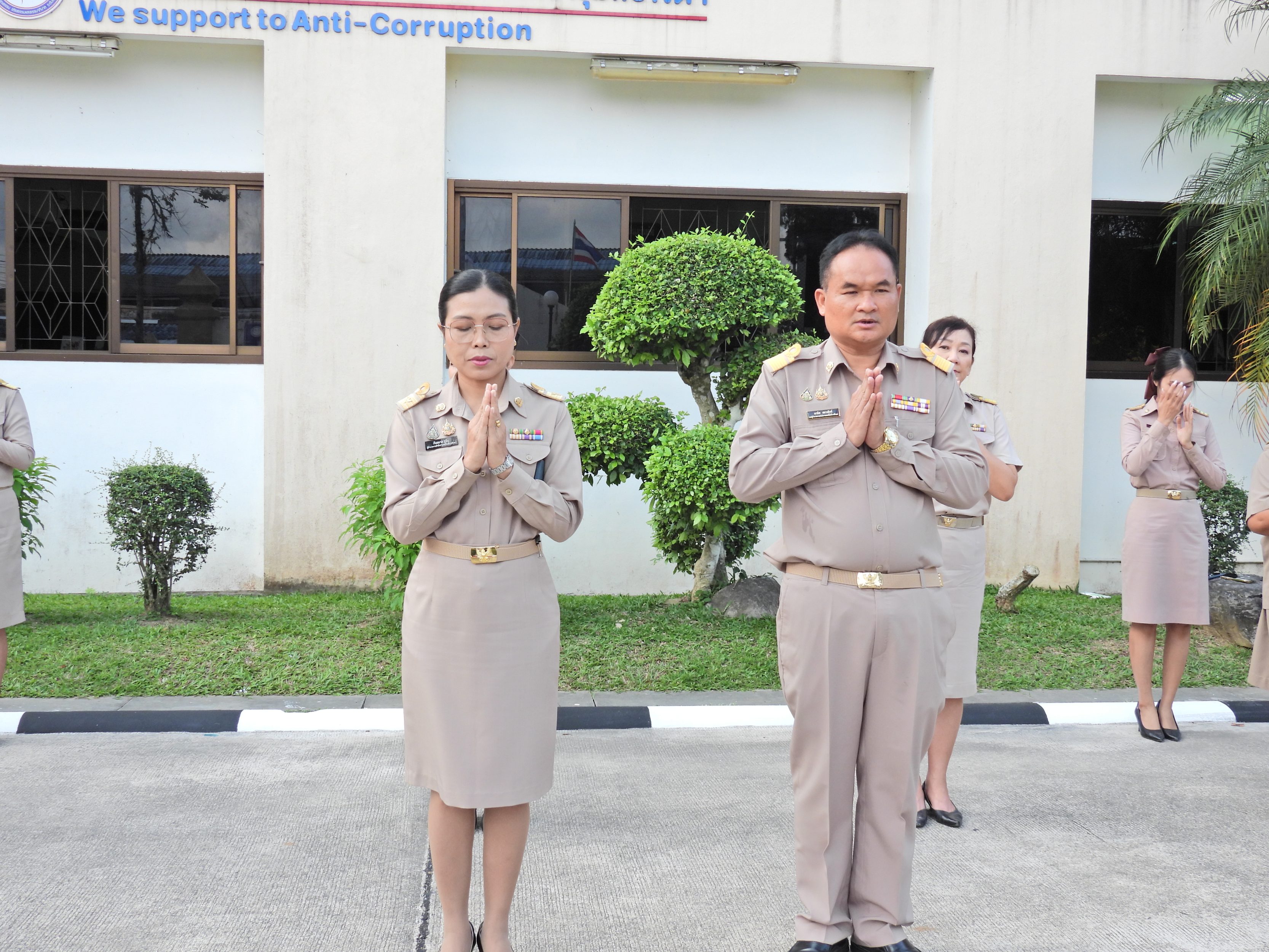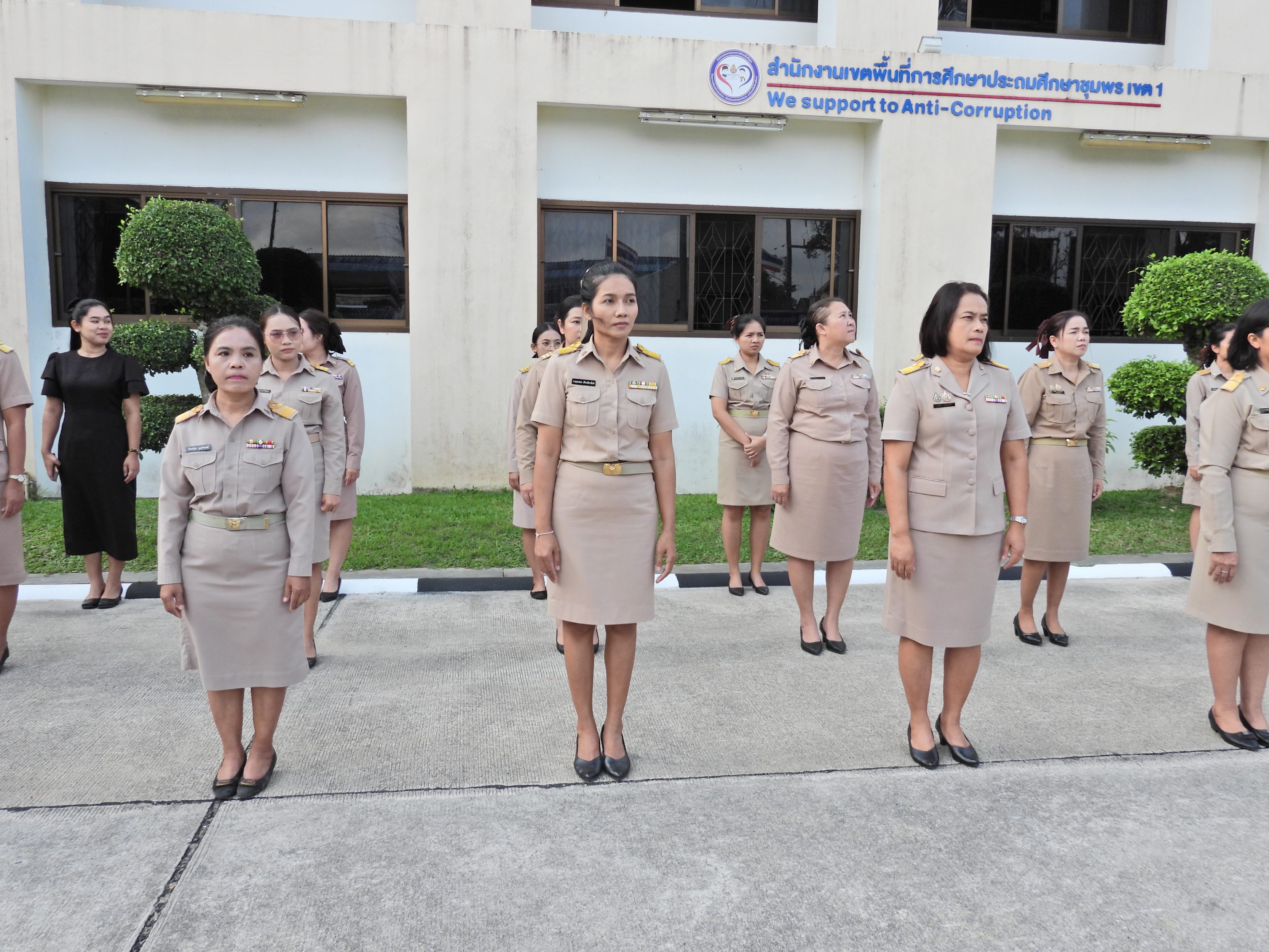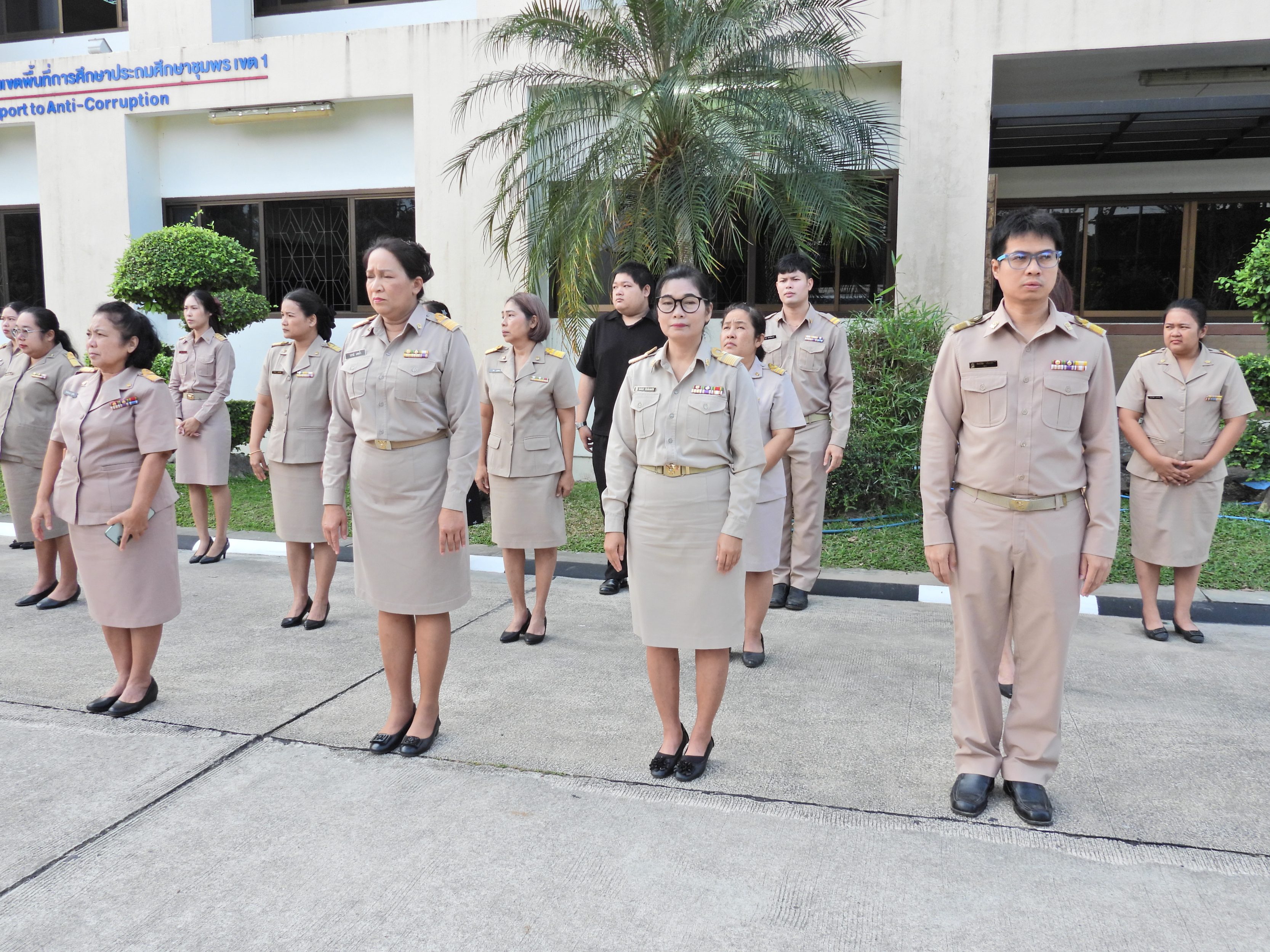 วันจันทร์ที่ 9 กุมภาพันธ์ 2569 เวลา 08.30 น. ดร.กันยมาส ชูจีน ผู้อำนวยการสำนักงานเขตพื้นที่การศึกษาประถมศึกษาชุมพร เขต 1 นายมานิส สลางสิงห์ รอง ผอ.สพป.ชุมพร เขต 1 ผู้อำนวยการกลุ่ม/หน่วย และบุคลากรใน สพป.ชุมพร เขต 1 ร่วมกิจกรรมเข้าแถวเคารพธงชาติ บูชาพระรัตนตรัย ร้องเพลงสรรเสริญพระบารมี และกล่าวคำปฏิญญาเขตสุริต เพื่อให้ทุกคนได้ตระหนักและเห็นคุณค่าของชาติ สร้างความรัก สามัคคี ให้เกิดในหน่วยงาน สร้างวินัย รู้หน้าที่ ความรับผิดชอบ ปฏิบัติดี ปฏิบัติชอบ ภายใต้คุณธรรมนำความรู้ เพื่อสร้างและรักษาเอกลักษณ์ขององค์กร แสดงออกเชิงสัญลักษณ์ในการขับเคลื่อนโครงการเสริมสร้างคุณธรรม จริยธรรม และธรรมาภิบาล ในเขตพื้นที่การศึกษา "ป้องกันการทุจริต" (เขตสุจริต)