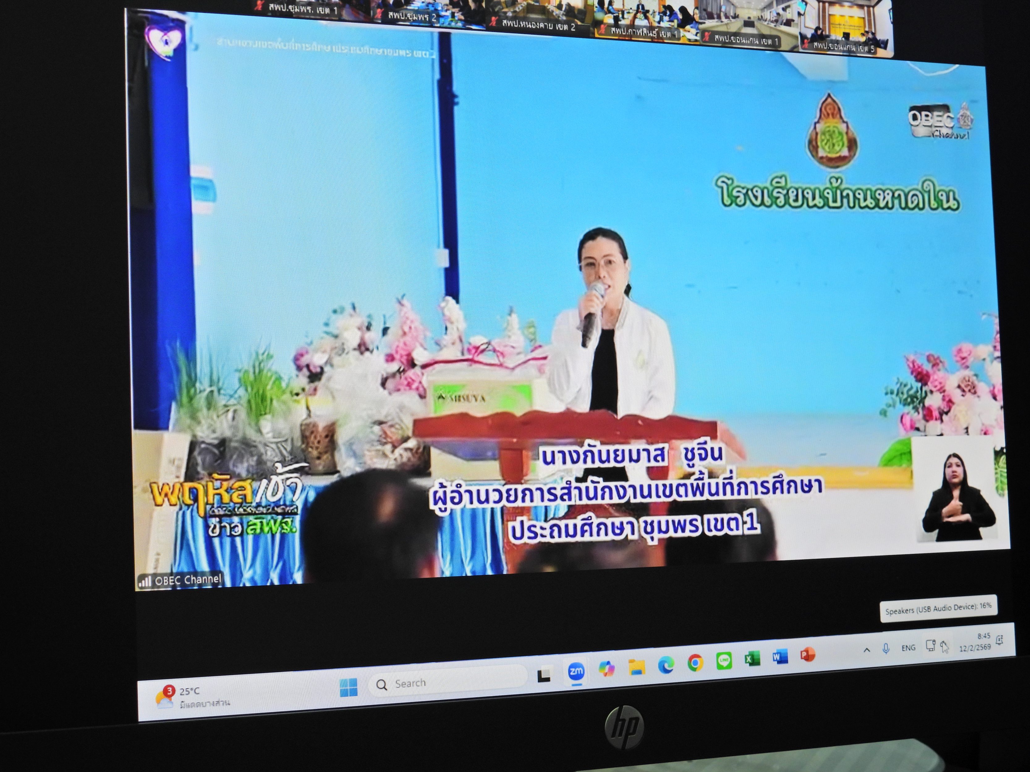 ดร.กันยมาส ชูจีน ผู้อำนวยการสำนักงานเขตพื้นที่การศึกษาประถมศึกษาชุมพร เขต 1 พร้อมด้วย นายไพฑูรย์ ศรีวะสุทธิ์ นายมานิส สลางสิงห์ รองผู้อำนวยการสำนักงานเขตพื้นที่การศึกษาประถมศึกษาชุมพร เขต 1 ผู้อำนวยการกลุ่ม/หน่วย และผู้เกี่ยวข้อง ร่วมรับชมรายการพฤหัสเช้า..ข่าว สพฐ. ครั้งที่ 6/2569 เพื่อรับฟังการดำเนินงานโยบาย ข้อมูลข่าวสารการจัดการศึกษาและนำนโยบายสู่การปฏิบัติอย่างเป็นรูปธรรม จากสำนักงานคณะกรรมการการศึกษาขั้นพื้นฐาน รวมทั้งประเด็นอื่นๆ ที่เกี่ยวข้องกับการจัดการศึกษา
