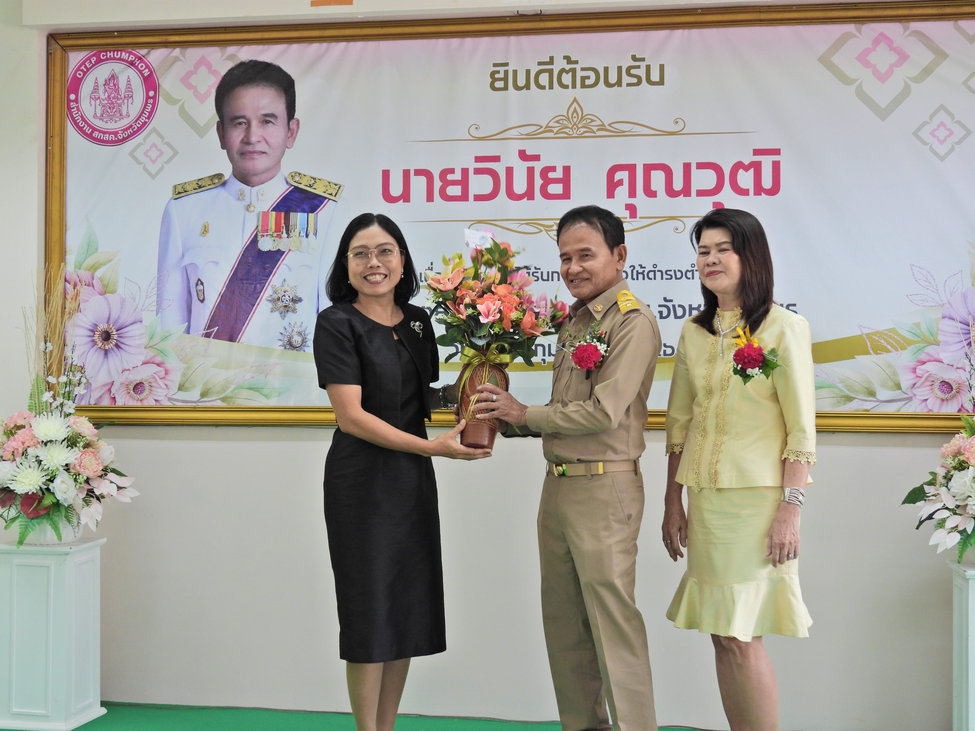 วันที่ 17 กุมภาพันธ์ 2569 เวลา 09.30 น. ดร.กันยมาส ชูจีน ผู้อำนวยการสำนักงานเขตพื้นที่การศึกษาประถมศึกษาชุมพร เขต 1 ร่วมแสดงความยินดีและให้การต้อนรับ นายวินัย คุณวุฒิ เนื่องในโอกาสเข้ารับตำแหน่งผู้อำนวยการสำนักงาน สกสค.จังหวัดชุมพร ณ สำนักงาน สกสค.จังหวัดชุมพร