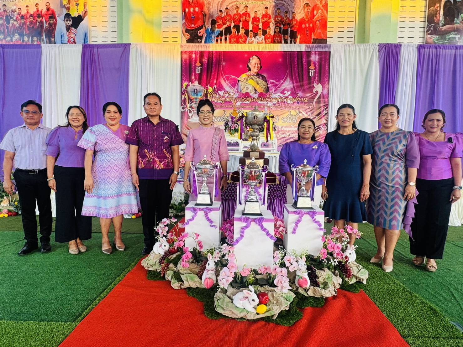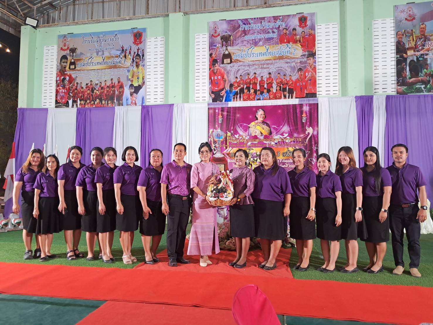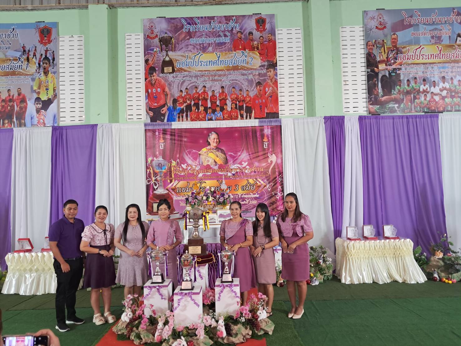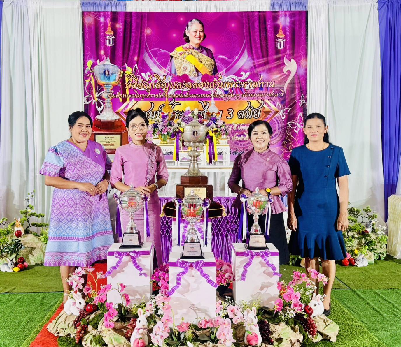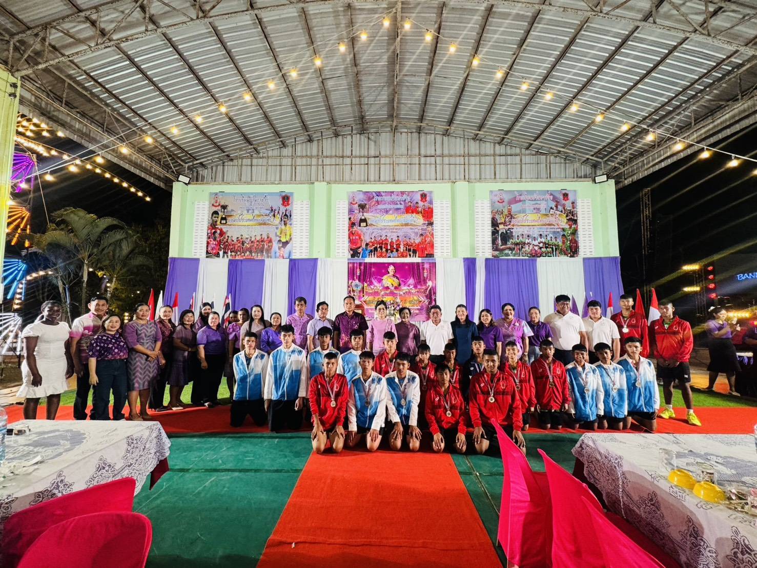 วันที่ 28 กุมภาพันธ์ 2569 เวลา 18.15 น. ดร.กันยมาส ชูจีน ผู้อำนวยการสำนักงานเขตพื้นที่การศึกษาประถมศึกษาชุมพร เขต 1 เป็นประธาน พร้อมด้วย นายมานิส สลางสิงห์ รองผู้อำนวยการสำนักงานเขตพื้นที่การศึกษาประถมศึกษาชุมพร เขต 1 และ นายยุทธนา มรกต ศึกษานิเทศก์ ร่วมเป็นเกียรติ ในพิธีอัญเชิญและฉลองถ้วยพระราชทาน สมเด็จพระกนิษฐาธิราชเจ้า กรมสมเด็จพระเทพรัตนราชสุดาฯ สยามบรมราชกุมารี แชมป์ประเทศไทย สมัยที่ 3 การแข่งขันวิทยุการบินมินิวอลเลย์บอล ชิงถ้วยพระราชทานสมเด็จพระกนิษฐาธิราชเจ้า กรมสมเด็จพระเทพรัตนราชสุดาฯ สยามบรมราชกุมารี รอบชิงชนะเลิศแห่งประเทศไทย รุ่นอายุไม่เกิน 12 ปี ประเภททีมชาย ณ โรงเรียนบ้านงาช้างอำเภอท่าแซะ จังหวัดชุมพร