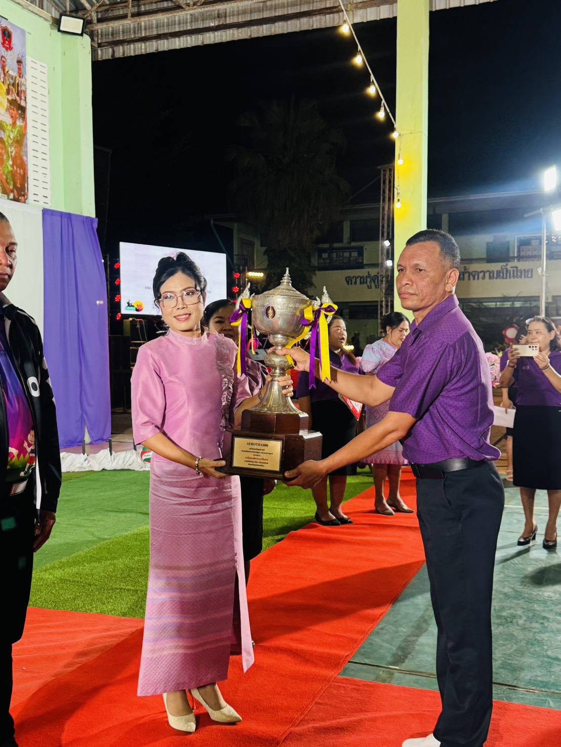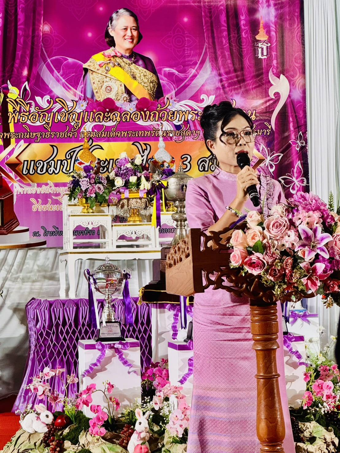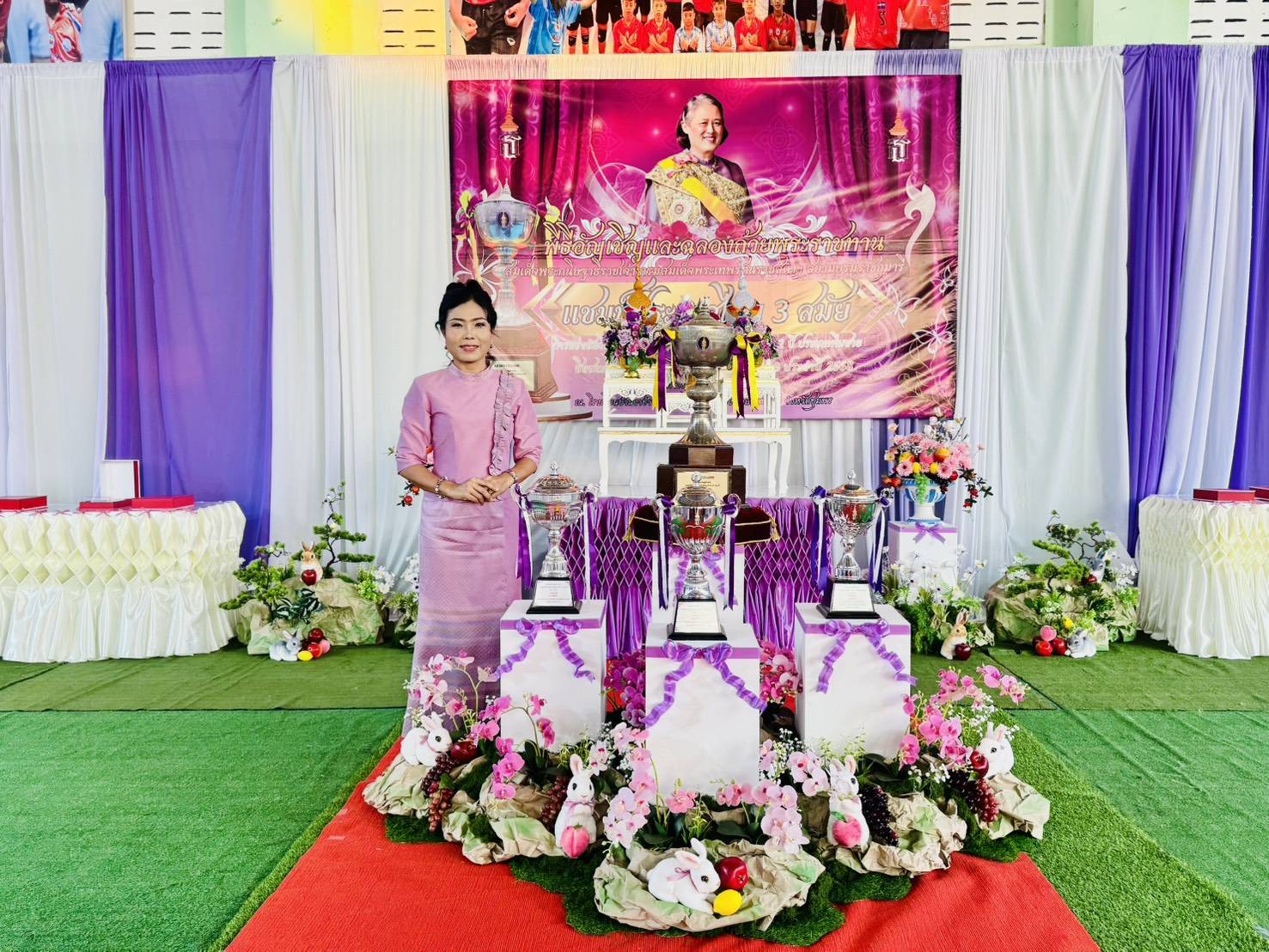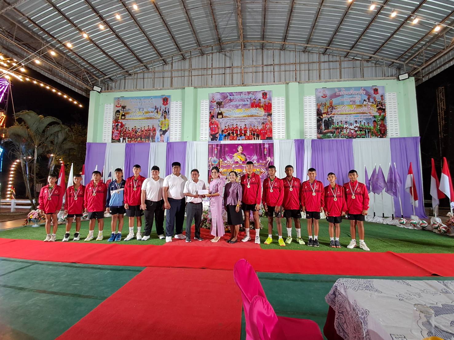 วันที่ 28 กุมภาพันธ์ 2569 เวลา 18.15 น. ดร.กันยมาส ชูจีน ผู้อำนวยการสำนักงานเขตพื้นที่การศึกษาประถมศึกษาชุมพร เขต 1 เป็นประธาน พร้อมด้วย นายมานิส สลางสิงห์ รองผู้อำนวยการสำนักงานเขตพื้นที่การศึกษาประถมศึกษาชุมพร เขต 1 และ นายยุทธนา มรกต ศึกษานิเทศก์ ร่วมเป็นเกียรติ ในพิธีอัญเชิญและฉลองถ้วยพระราชทาน สมเด็จพระกนิษฐาธิราชเจ้า กรมสมเด็จพระเทพรัตนราชสุดาฯ สยามบรมราชกุมารี แชมป์ประเทศไทย สมัยที่ 3 การแข่งขันวิทยุการบินมินิวอลเลย์บอล ชิงถ้วยพระราชทานสมเด็จพระกนิษฐาธิราชเจ้า กรมสมเด็จพระเทพรัตนราชสุดาฯ สยามบรมราชกุมารี รอบชิงชนะเลิศแห่งประเทศไทย รุ่นอายุไม่เกิน 12 ปี ประเภททีมชาย ณ โรงเรียนบ้านงาช้างอำเภอท่าแซะ จังหวัดชุมพร