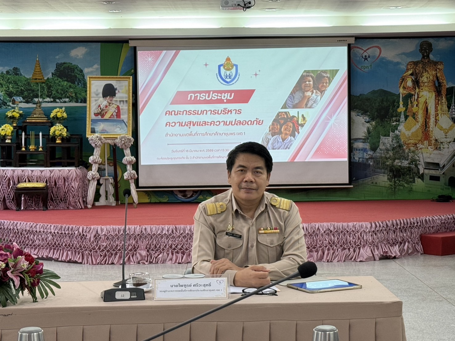>>> วันที่ 16 มีนาคม 2569 เวลา 13.30 น. ดร.กันยมาส ชูจีน ผู้อำนวยการสำนักงานเขตพื้นที่การศึกษาประถมศึกษาชุมพร เขต 1 มอบหมายให้ นายไพฑูรย์ ศรีวะสุทธิ์ รองผู้อำนวยการสำนักงานเขตพื้นที่การศึกษาประถมศึกษาชุมพร เขต 1 เป็นประธานในการประชุมคณะกรรมการศูนย์บริหารความสุขและความปลอดภัยสำนักงานเขตพื้นที่การศึกษาประถมศึกษาชุมพร เขต 1 ครั้งที่ 1/2569 เพื่อขับเคลื่อนการดำเนินงานของศูนย์บริหารความสุขและความปลอดภัย สำนักงานเขตพื้นที่การศึกษาประถมศึกษาชุมพร เขต 1 ณ ห้องประชุมขุนกระทิง ชั้น 3 สำนักงานเขตพื้นที่การศึกษาประถมศึกษาชุมพร เขต 1
