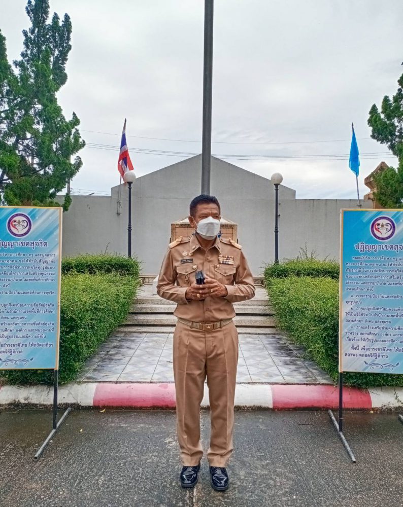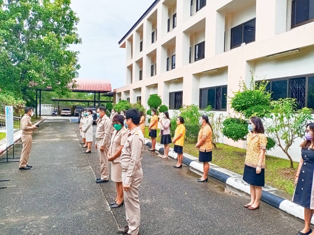 เมื่อวันจันทร์ที่ 16 สิงหาคม 2564 เวลา 08.30 น. นายมนูญ จันทร์สุข ผู้อำนวยการสำนักงานเขตพื้นที่การศึกษาประถมศึกษาชุมพร เขต 1 มอบหมายให้ นายเลอศักดิ์ รัชณาการ รอง ผอ.สพป.ชุมพร เขต 1 นำคณะข้าราชการและลูกจ้างร่วมกิจกรรม เข้าแถวเคารพธงชาติและสวดมนต์ไหว้พระ เพื่อแสดงความจงรักภักดีต่อสถาบันชาติ ศาสนา และพระมหากษัตริย์ กล่าวคำปฏิญญาเขตสุจริตเพื่อเป็นการแสดงออกเชิงสัญลักษณ์ในการขับเคลื่อนโครงการเสริมสร้างคุณธรรมจริยธรรม และธรรมาภิบาลในเขตพื้นที่การศึกษาสุจริต พร้อมได้พบปะพูดคุยแจ้งข้อมูลข่าวสาร การขับเคลื่อนการจัดการศึกษาเพื่อพัฒนาคุณภาพนักเรียน เพื่อเป็นการเตรียมความพร้อมให้กับบุคลากรของเขตพื้นที่ในการทำงานและการให้บริการกับผู้มาติดต่อราชการ