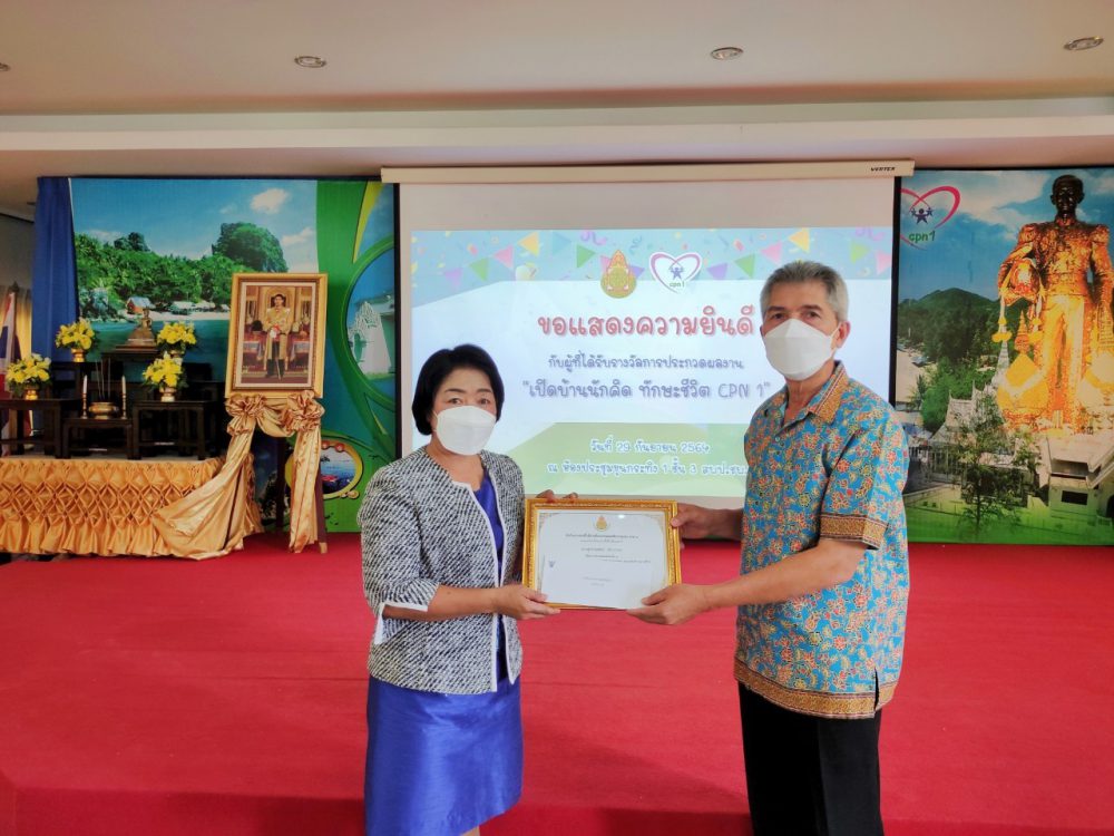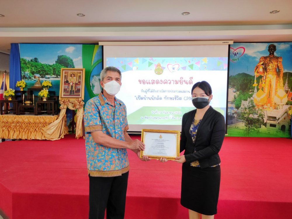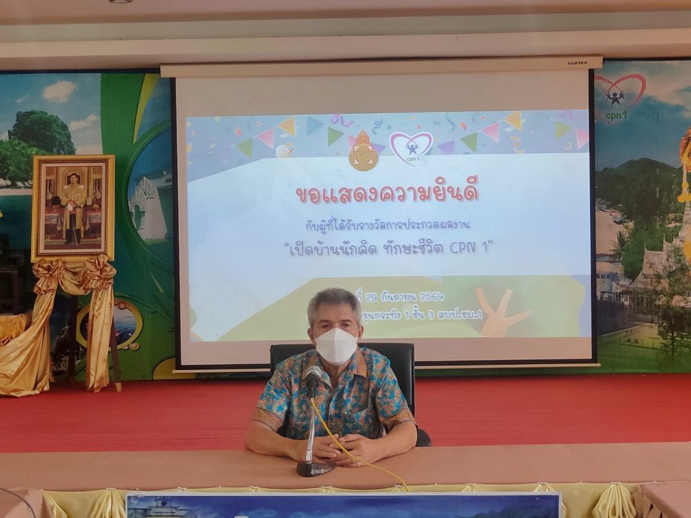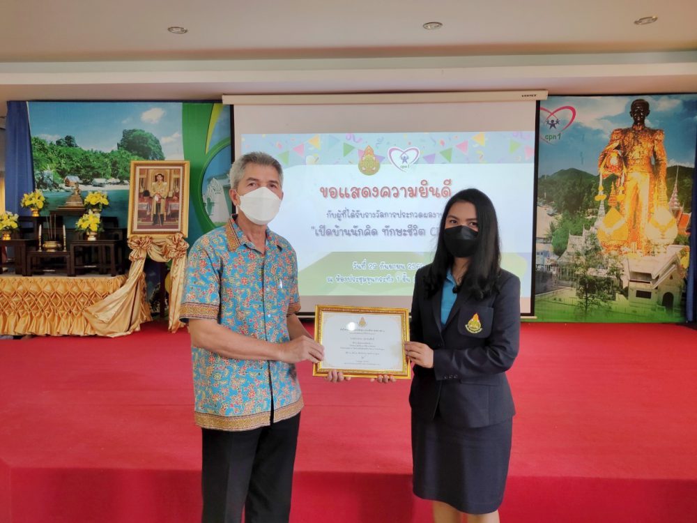 วันที่ 29 กันยายน 2564 นายมนูญ จันทร์สุข ผู้อำนวยการสำนักงานเขตพื้นที่การศึกษาประถมศึกษาชุมพร เขต 1 เป็นประธานมอบเกียรติบัตร พร้อมเงินรางวัล ให้แก่ผู้ที่ได้รับรางวัลชนะเลิศ รองชนะเลิศอันดับ 1 และรองชนะเลิศอันดับ 2 ในการประกวดผลงาน "เปิดบ้านนักคิด ทักษะชีวิต cpn 1" ระดับเขตพื้นที่การศึกษา ปีการศึกษา 2564 ประกอบด้วย กิจกรรม 1 โรงเรียน 1 นวัตกรรมสร้างสรรค์คนดี (คุรุชน คนคุณธรรม) ประเภทผู้บริหารสถานศึกษา และประเภทครูผู้สอน และกิจกรรม 1 โรงเรียน 1 อาชีพ 1 ผลิตภัณฑ์ รวมทั้งสิ้น 22 รางวัล ณ ห้องประชุมขุนกระทิง 1 สำนักงานเขตพื้นที่การศึกษาประถมศึกษาชุมพร เขต 1