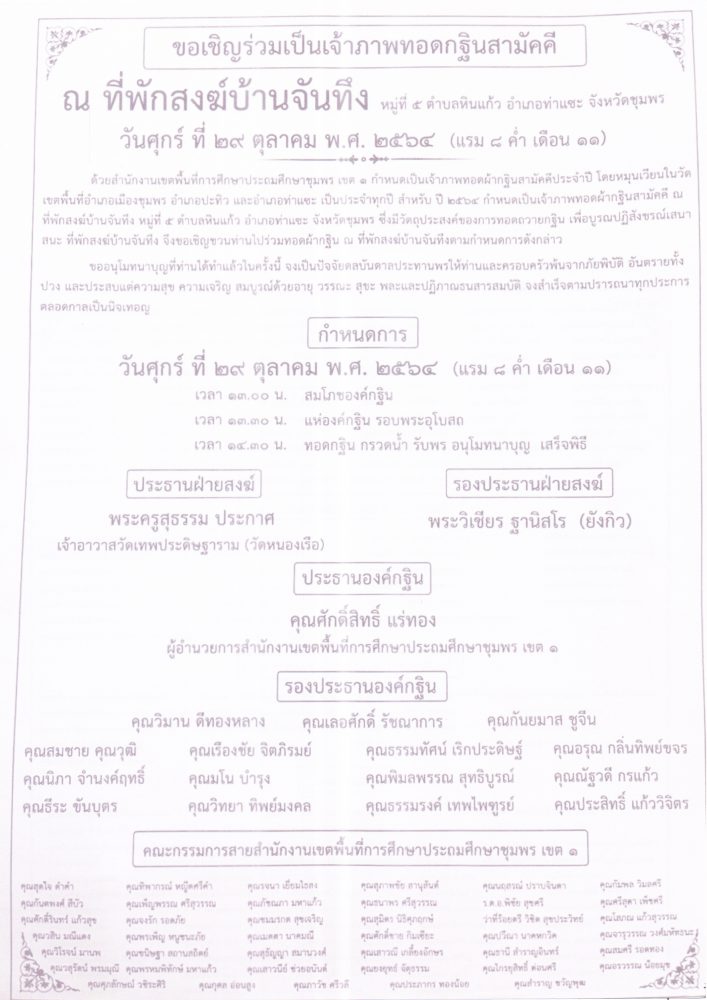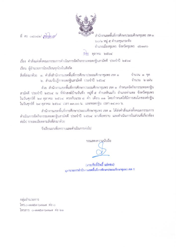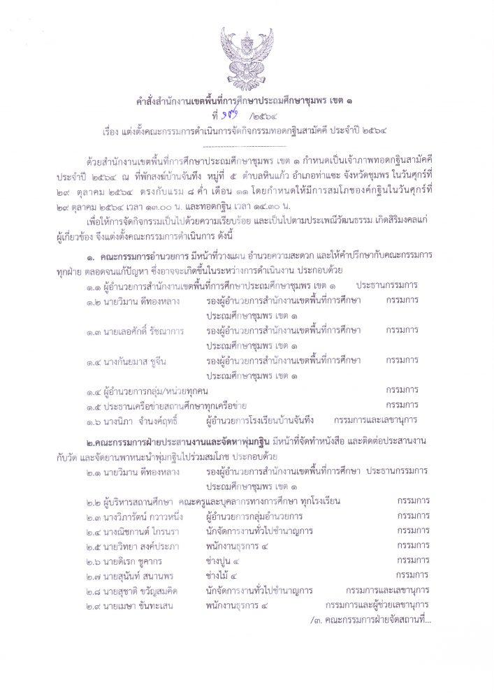 การจัดกิจกรรมทอดกฐินสามัคคี ประจำปี 2564 12 ตุลาคม 2564 กลุ่มอำนวยการ สพป.ชพ.1 ข่าวและกิจกรรมกลุ่มอำนวยการ, มาตรการเผยแพร่ข้อมูลต่อสาธารณะ คำสั่งแต่งตั้งคณะกรรมการดำเนินการจัดกิจกรรมทอดกฐินสามัคคี ประจำปี 2564 FacebookFacebookXXLINELine กลุ่มอำนวยการ สพป.ชพ.1
