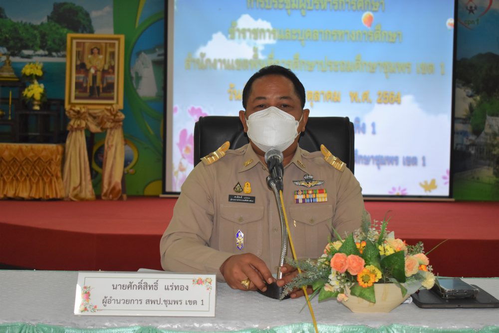 วันที่ 25 ตุลาคม 2564 เวลา 13.30 น. นายศักดิ์สิทธิ์ แร่ทอง ผู้อำนวยการสำนักงานเขตพื้นที่การศึกษาประถมศึกษาชุมพร เขต 1 เป็นประธานการประชุมผู้บริหารการศึกษา ข้าราชการและบุคลากรของสำนักงานเขตพื้นที่การศึกษา เพื่อแจ้งข้อราชการและมอบนโยบายแนวทางการดำเนินงานของสำนักงานเขตพื้นที่การศึกษาประถมศึกษาชุมพร เขต 1 เป็นการสร้างการรับรู้และแลกเปลี่ยนความคิดเห็นพร้อมรับฟังปัญหาในการปฏิบัติงาน เพื่อเพิ่มประสิทธิภาพการบริหารจัดการและการทำงานร่วมกัน ณ ห้องประชุมขุนกระทิง 1 สำนักงานเขตพื้นที่การศึกษาประถมศึกษาชุมพร เขต 1