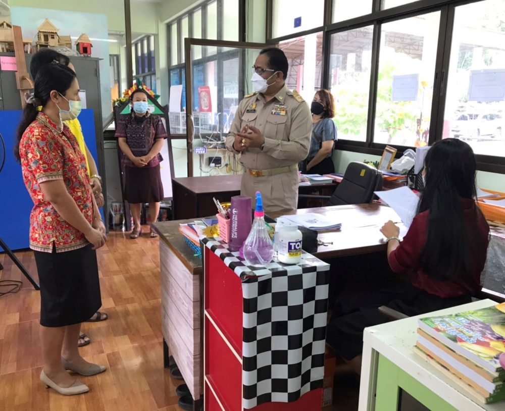 วันที่ 8 พฤศจิกายน 2564 นายศักดิ์สิทธิ์ แร่ทอง ผอ.สพป.ชุมพร เขต 1 พร้อมด้วยนายสุทธิพันธ์ แสงขำ ผู้อำนวยการกลุ่มกฎหมายและคดี ลงพื้นที่ตรวจเยี่ยมสถานศึกษาเพื่อสร้างขวัญกำลังใจกับผู้บริหารโรงเรียน ครู และบุคลากรทางการศึกษา และให้คำแนะนำแนวทางการปฏิบัติการเปิดเรียนตามมาตรการป้องกันควบคุมการแพร่ระบาดของโรคติดเชื้อไวรัสโคโรน่า 2019 (Covid–19) ณ โรงเรียนเมืองชุมพรบ้านเขาถล่ม โรงเรียนบ้านทรายขาว โรงเรียนบ้านบ่ออิฐ โรงเรียนบ้านดอนตะเคียน และโรงเรียนไทยรัฐวิทยา 76(บ้านพละ) พร้อมรับฟังการรายงาน ความพร้อม รูปแบบการเรียนการสอน และปัญหาอุปสรรคในการจัดการเรียนการสอนในภาคเรียนที่ 2 ปีการศึกษา 2564 ภายใต้สถานการณ์การแพร่ระบาดของโรคติดเชื้อไวรัสโคโรน่า 2019 (Covid–19)