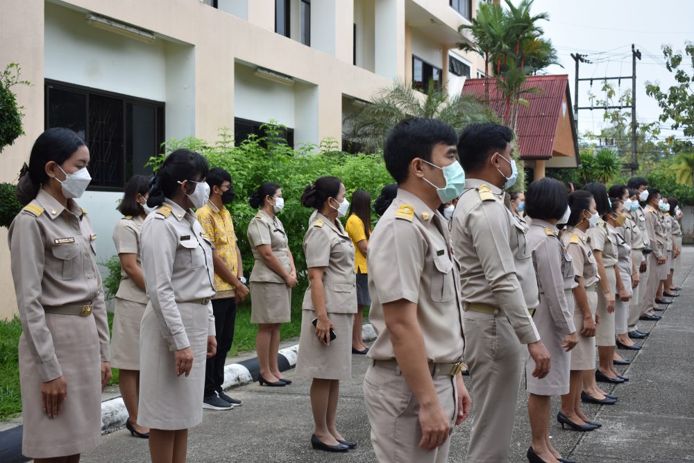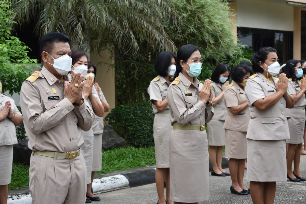 ข้าราชการและลูกจ้างสำนักงานเขตพื้นที่การศึกษาประถมศึกษาชุมพร เขต 1 ร่วมกิจกรรมเคารพธงชาติ บูชาพระรัตนตรัย และกล่าวคำปฏิญญาเขตพื้นที่การศึกษาสุจริต