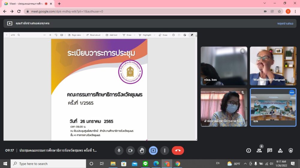 นายศักดิ์สิทธิ์ แร่ทอง ผอ.สพป.ชุมพร เขต 1 เข้าร่วมประชุมคณะกรรมการศึกษาธิการจังหวัดชุมพร ครั้งที่ 1/2565