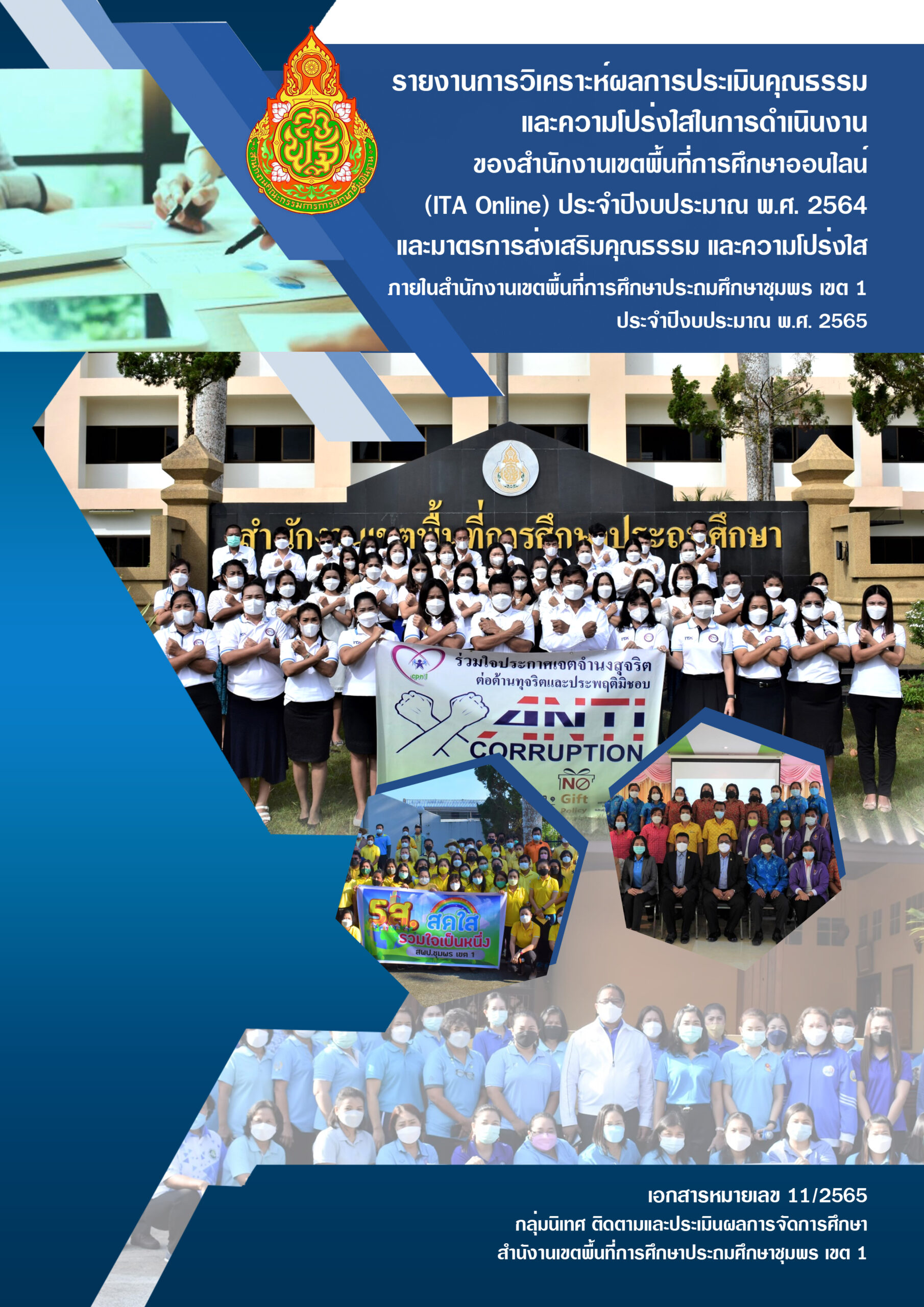 รายงานการวิเคราะห์ผลการประเมินคุณธรรม และความโปร่งใสในการดำเนินงานของสำนักงานเขตพื้นที่การศึกษาออนไลน์ (ITA Online) ประจำปีงบประมาณ พ.ศ. 2564 และมาตรการส่งเสริมคุณธรรม และความโปร่งใสภายในสำนักงานเขตพื้นที่การศึกษาประถมศึกษาชุมพร เขต 1 ประจำปีงบประมาณ พ.ศ. 2565