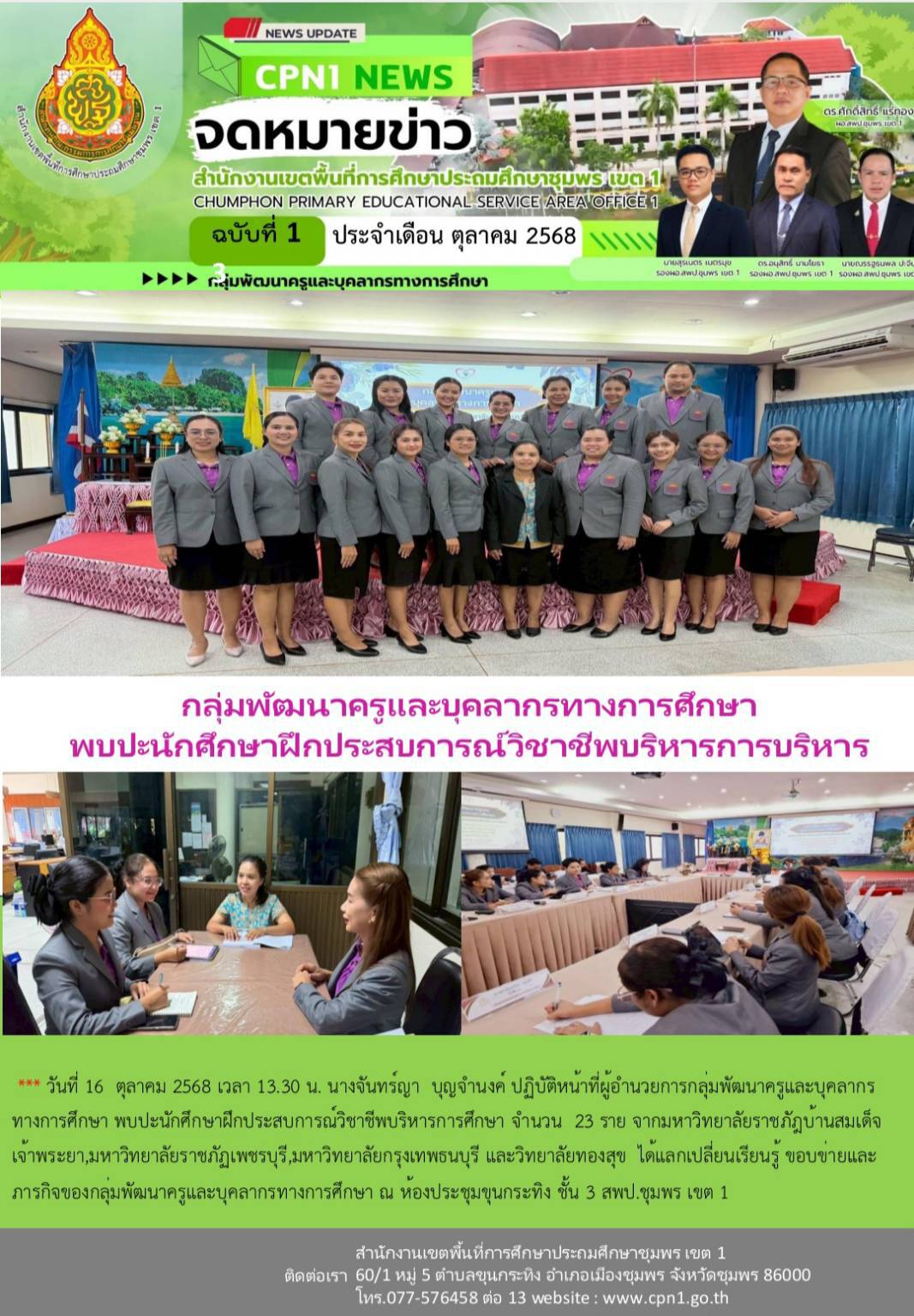 กลุ่มพัฒนาครูและบุคลากรทางการศึกษา พบปะนักศึกษาฝึกประสบการณ์วิชาชีพการบริหาร 16 ตุลาคม 256816 ตุลาคม 2025