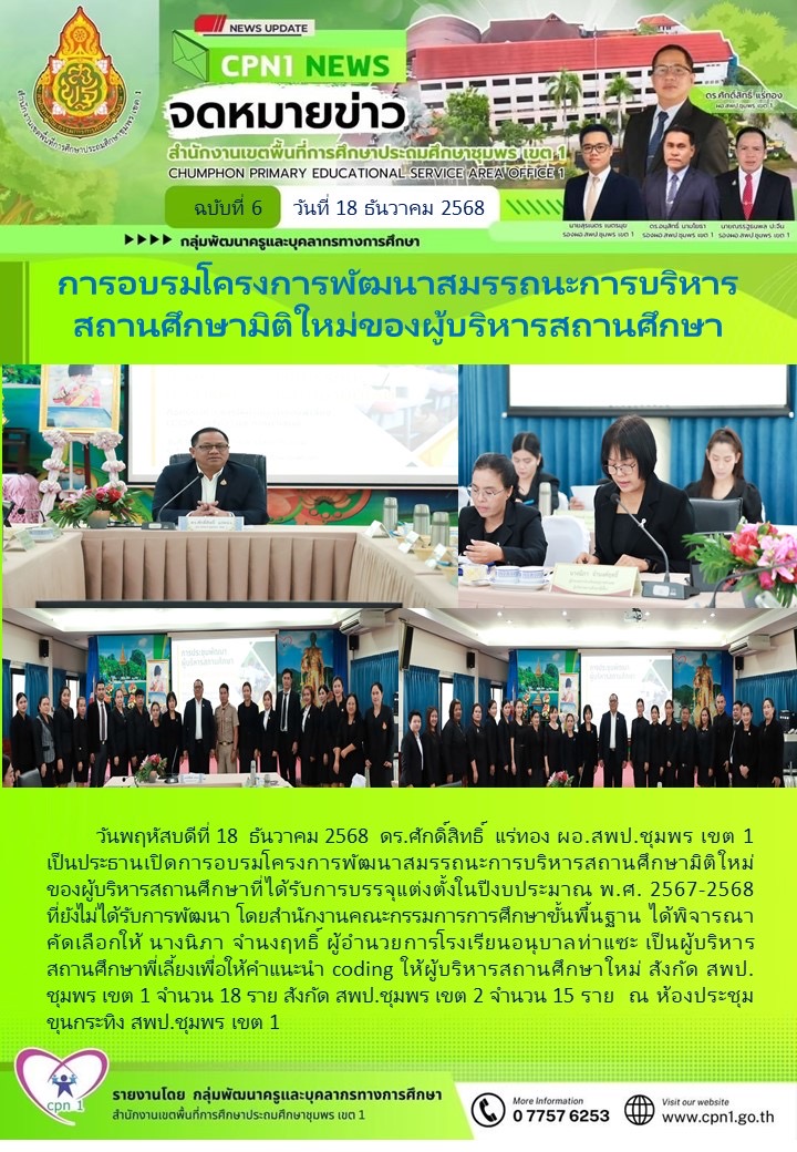 การอบรมโครงการพัฒนาสมรรถนะการบริหารสถานศึกษามิติใหม่ของผู้บริหารสถานศึกษา 18 ธันวาคม 256818 ธันวาคม 2025